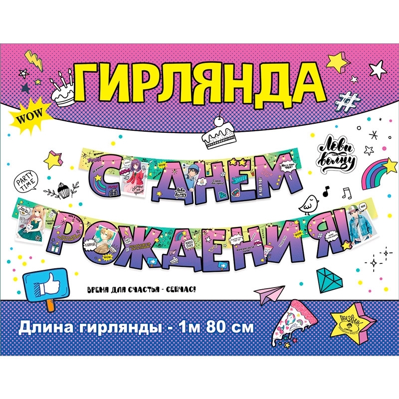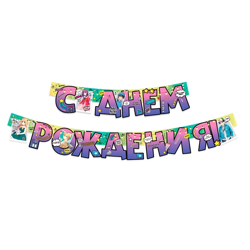 Гирлянда "С Днем рождения!" Аниме