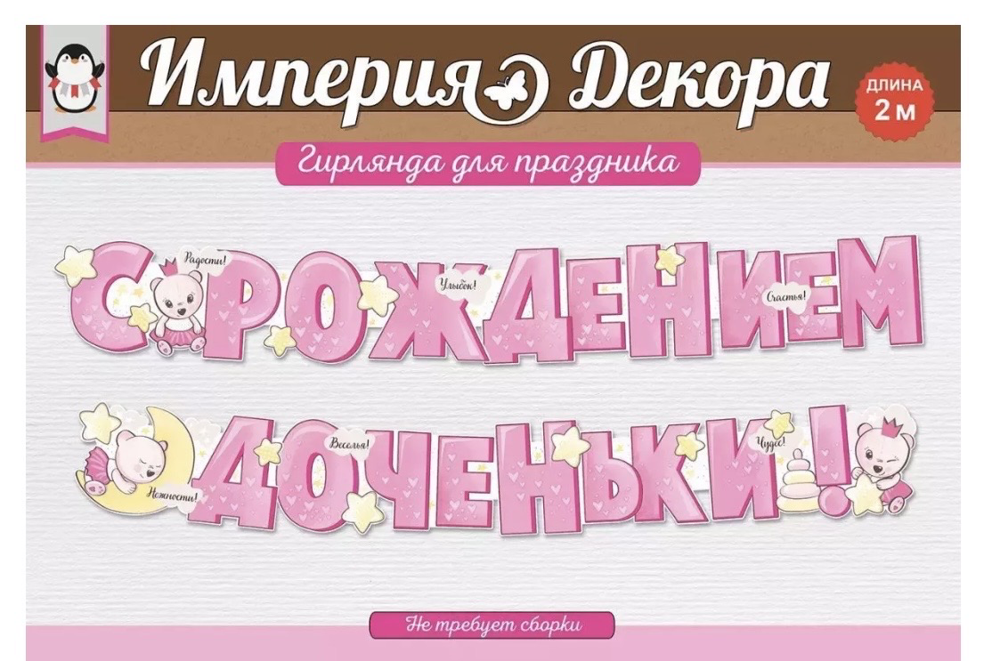 Гирлянда "С рождением доченьки!" на люверсах, 200 см