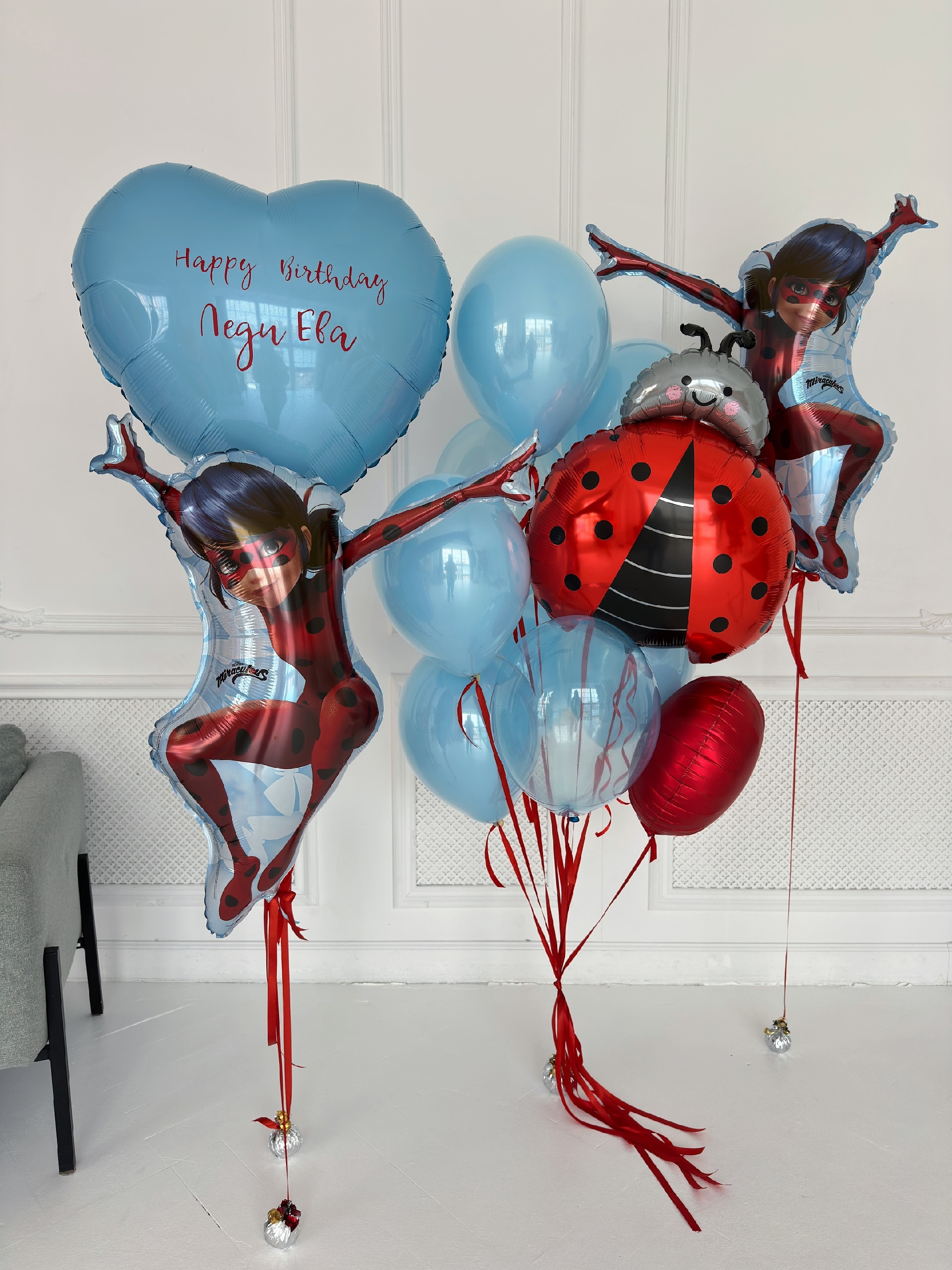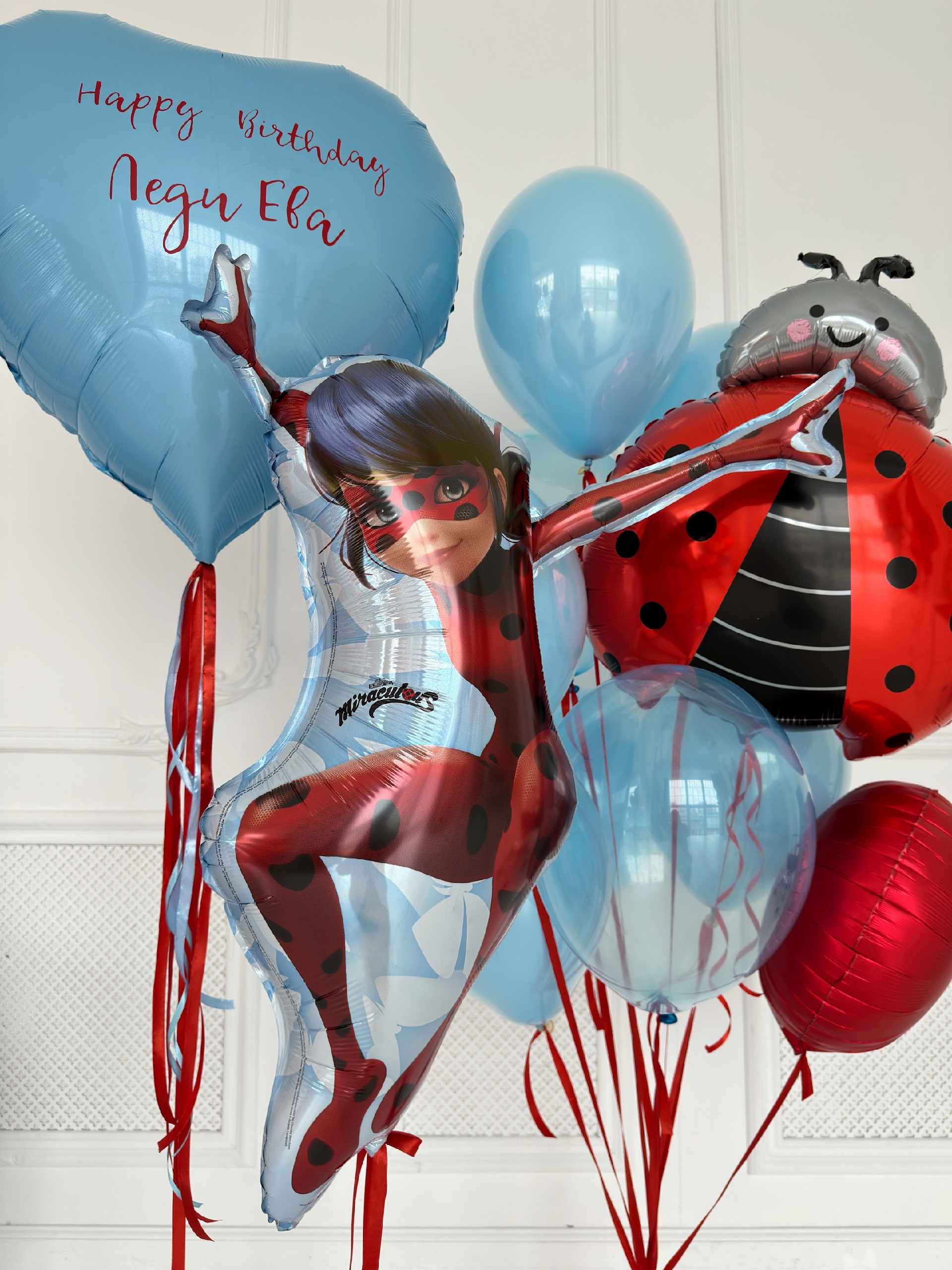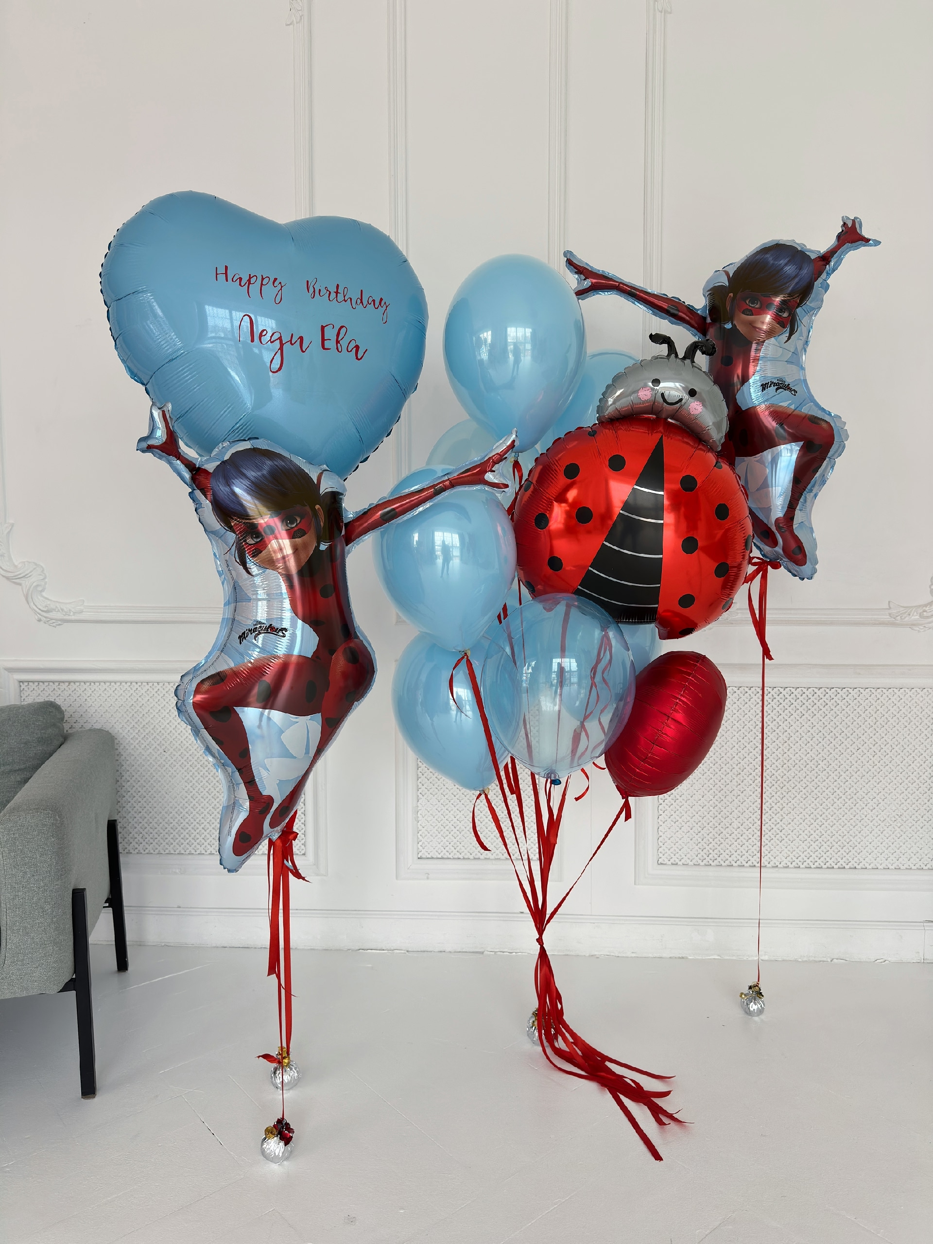 Фольгированный шар фигура «Божья коровка», 61 см — 1 шт Красный фольгированный круг 46 см — 1 шт Латексный шар 30 см, макарунс, нежно-голубой — 5 шт Латексный шар 30 см, макарунс, хрустально-голубой — 3 шт Фигура Леди Баг, 84 см — 2 шт Шар фольгированное сердце, голубое, 76 см — 1 шт