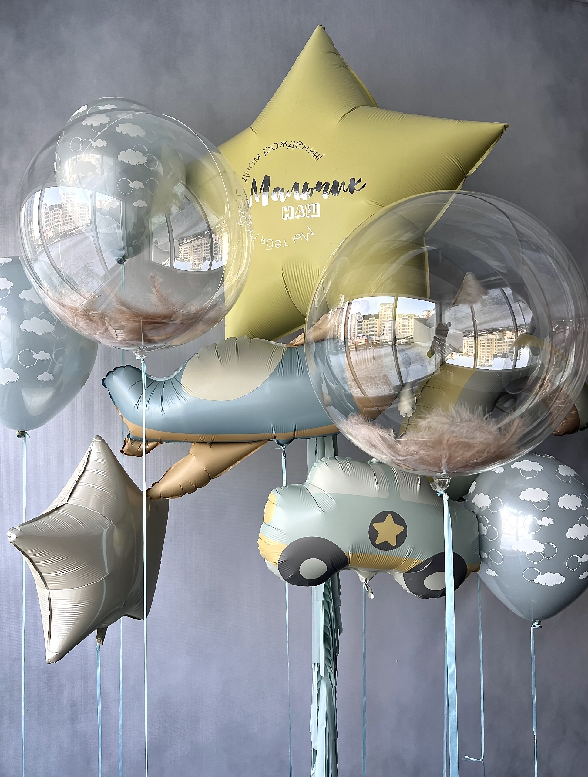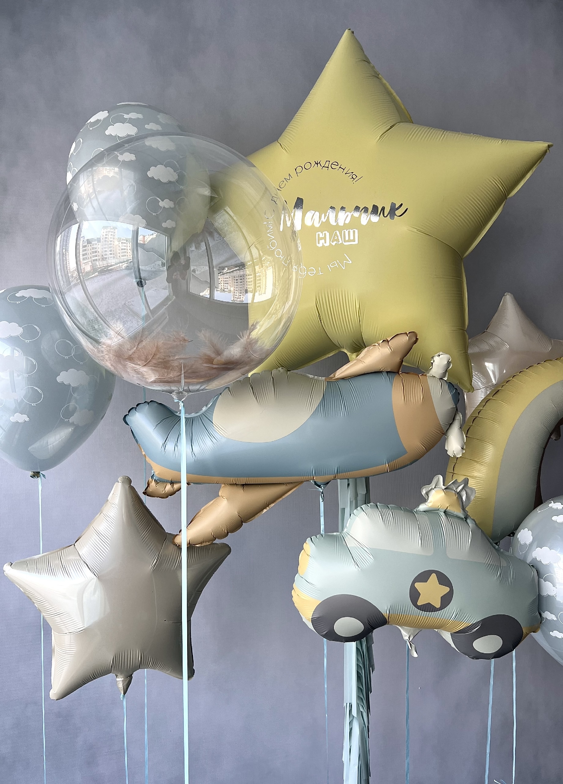 1 Фигуры фольга Китай «Самолет», «Машинка», «Радуга» - по 1 шт