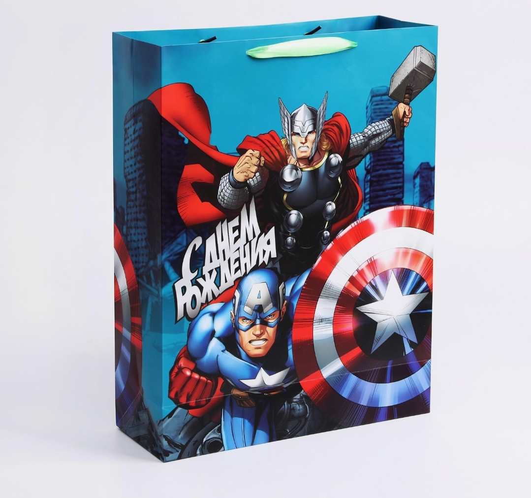 Пакет ламинированный вертикальный, 31 х 40 х 11 см «С Днем рождения, супергерой!», Мстители