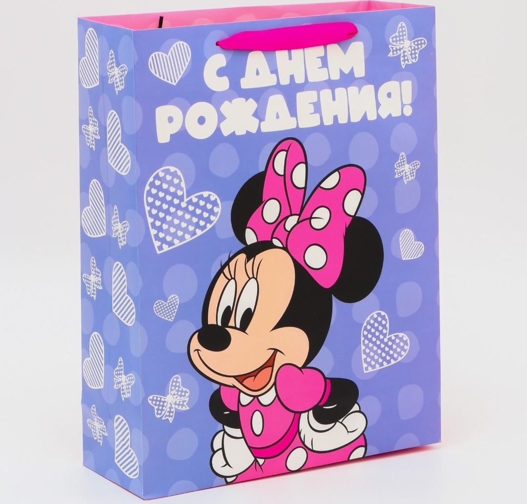 Пакет подарочный "С Днем рождения!", Минни Маус, 31х40х11,5 см