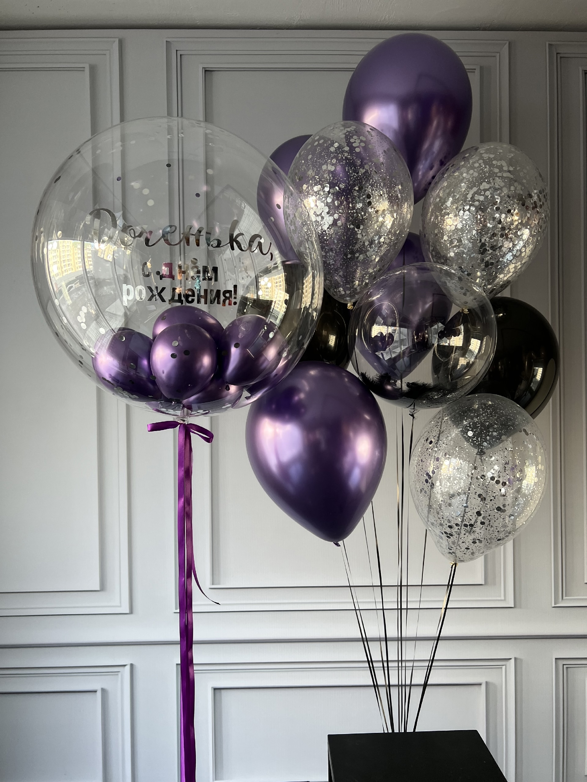 1 Баблс 24" Китай с шарами внутри 5" хром фиолетовый 10 шт - 1 шт