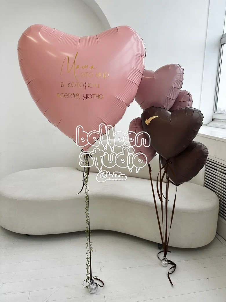 фольгированные сердца 18" коричневый 2 шт + декор