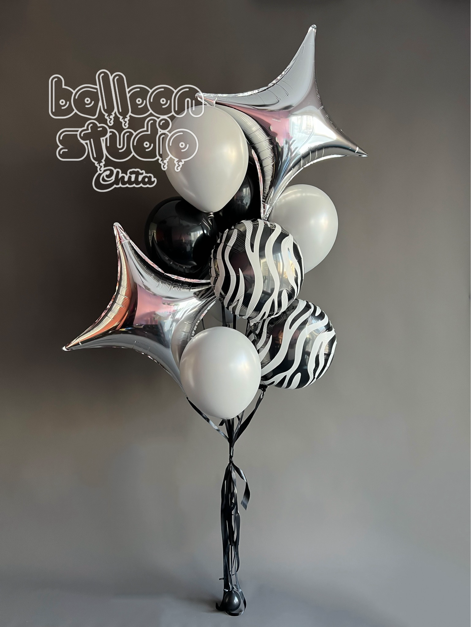 - шар 12" даблстаф -снаружи веселуха дымчатый пастель, внутри веселуха черный пастель- 5 шт