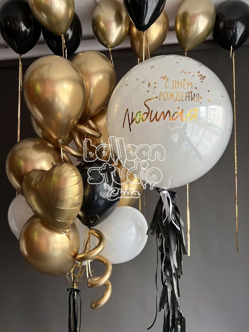 1 шар дабл бабл (белый ) + прослойка  с конфетти (золото) + индивидуальная надпись