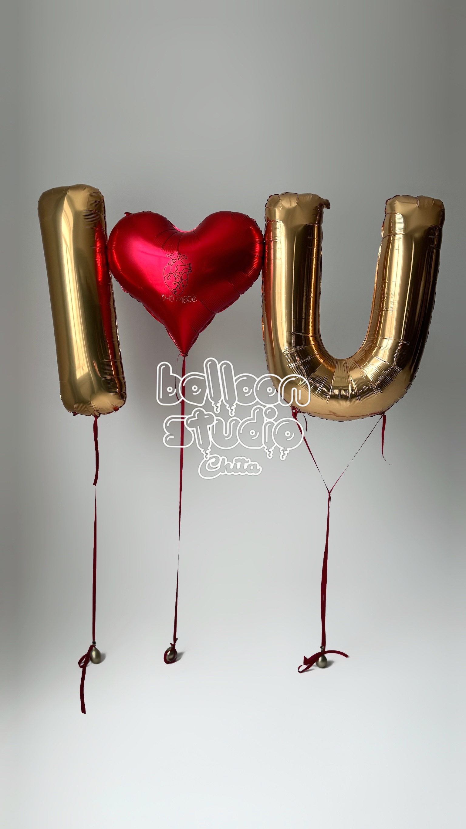 Метровые буквы I U d цвете золото + фигура сердца матовое красное примерно 60-70 см