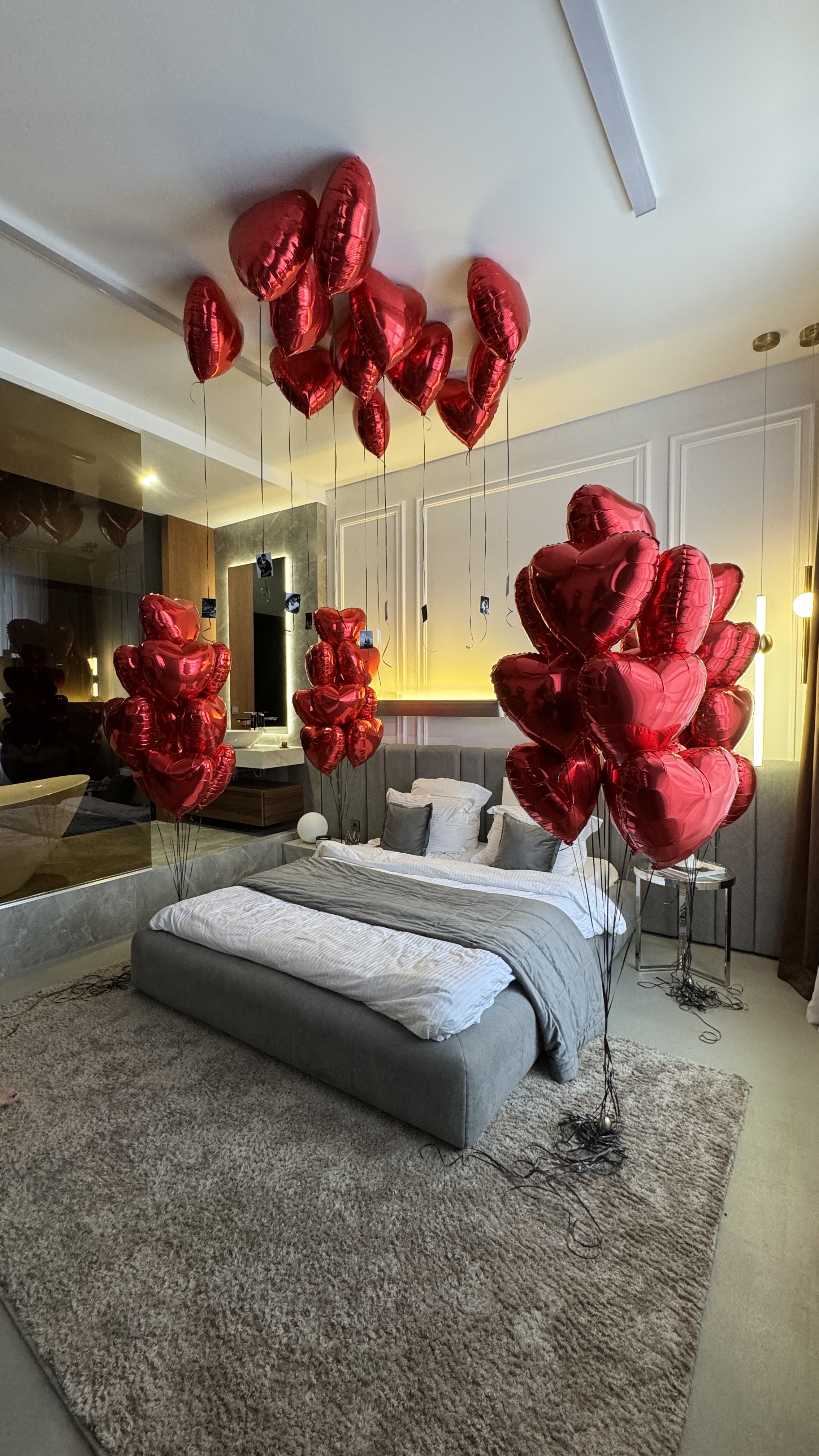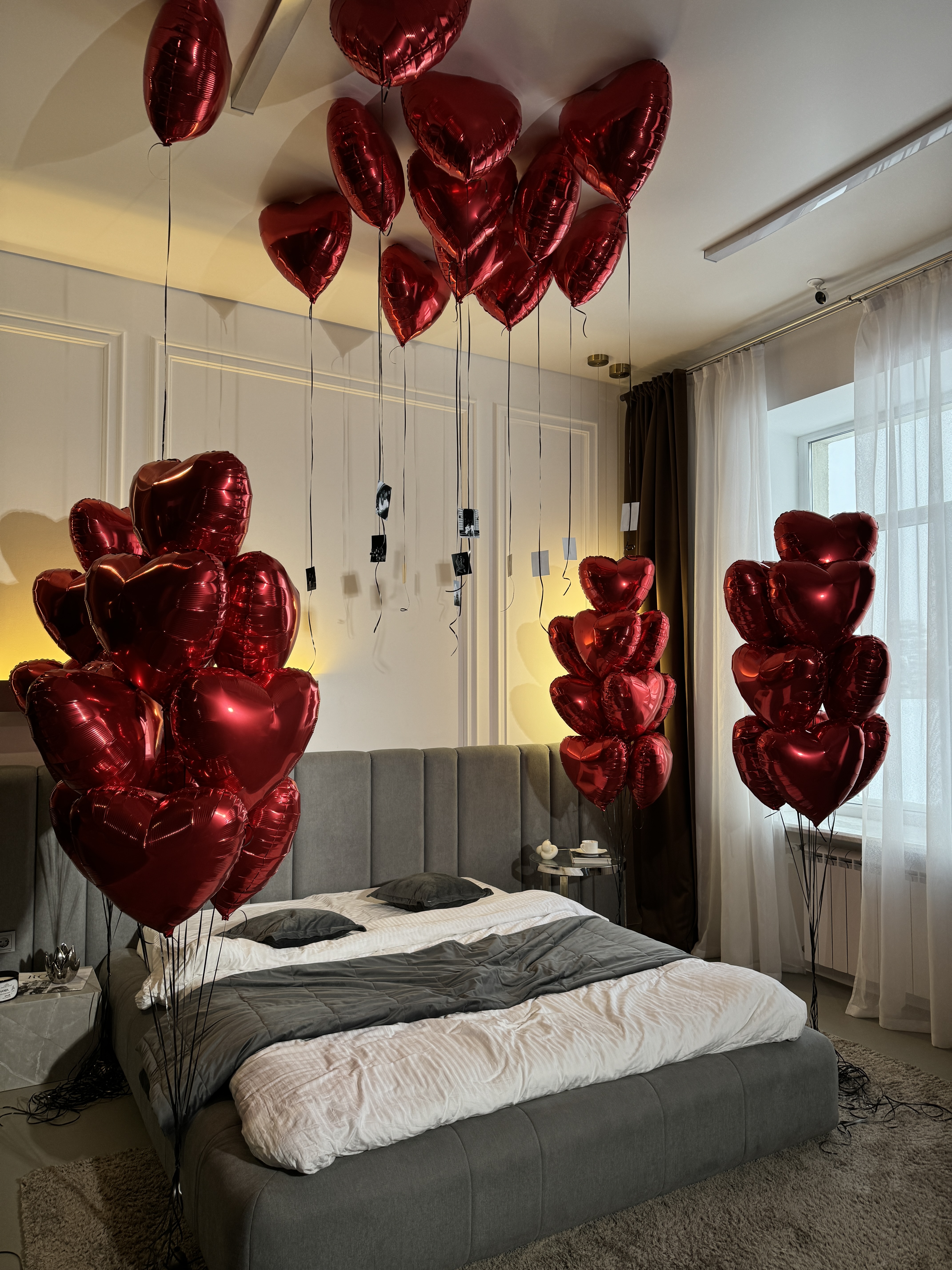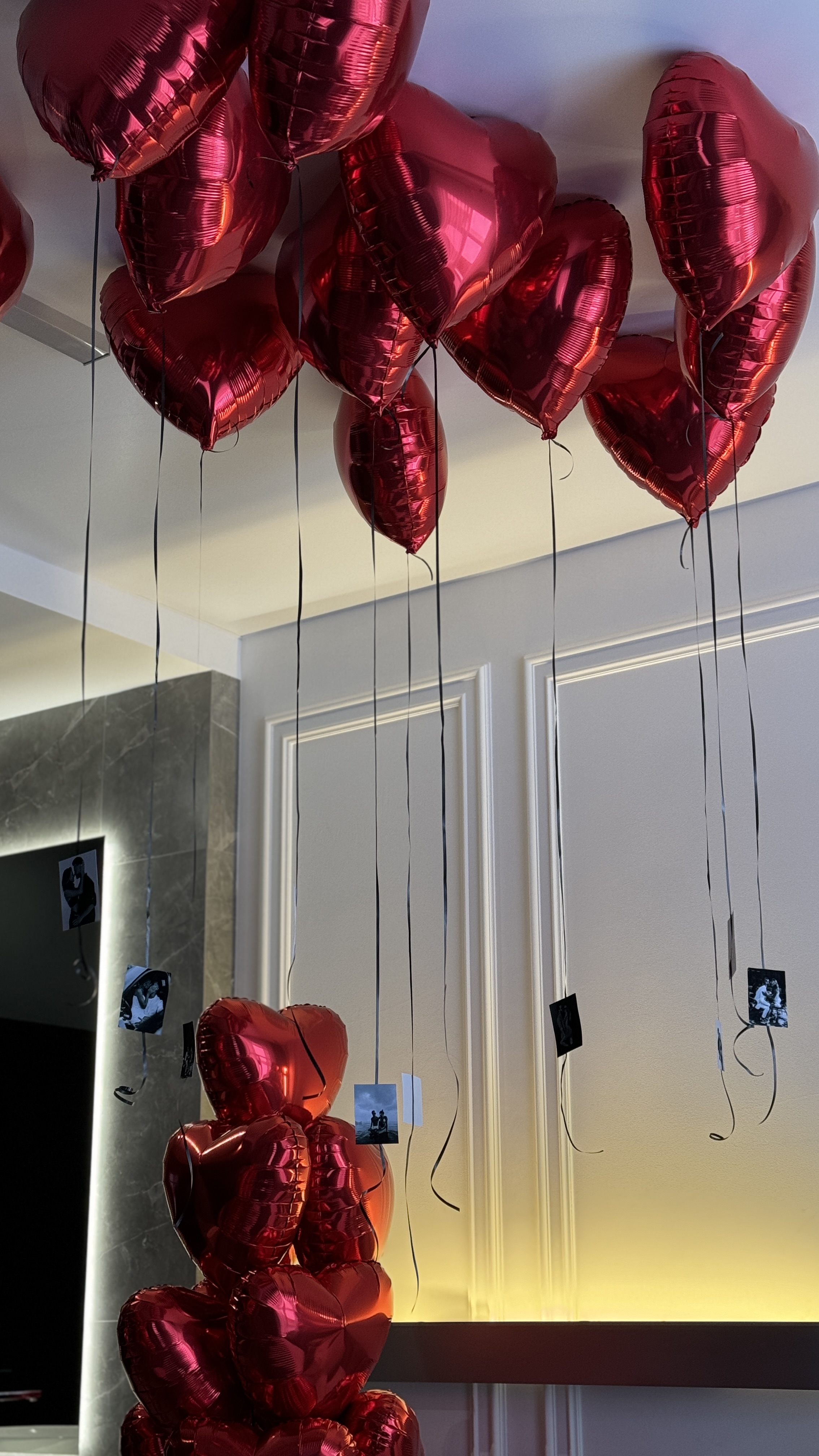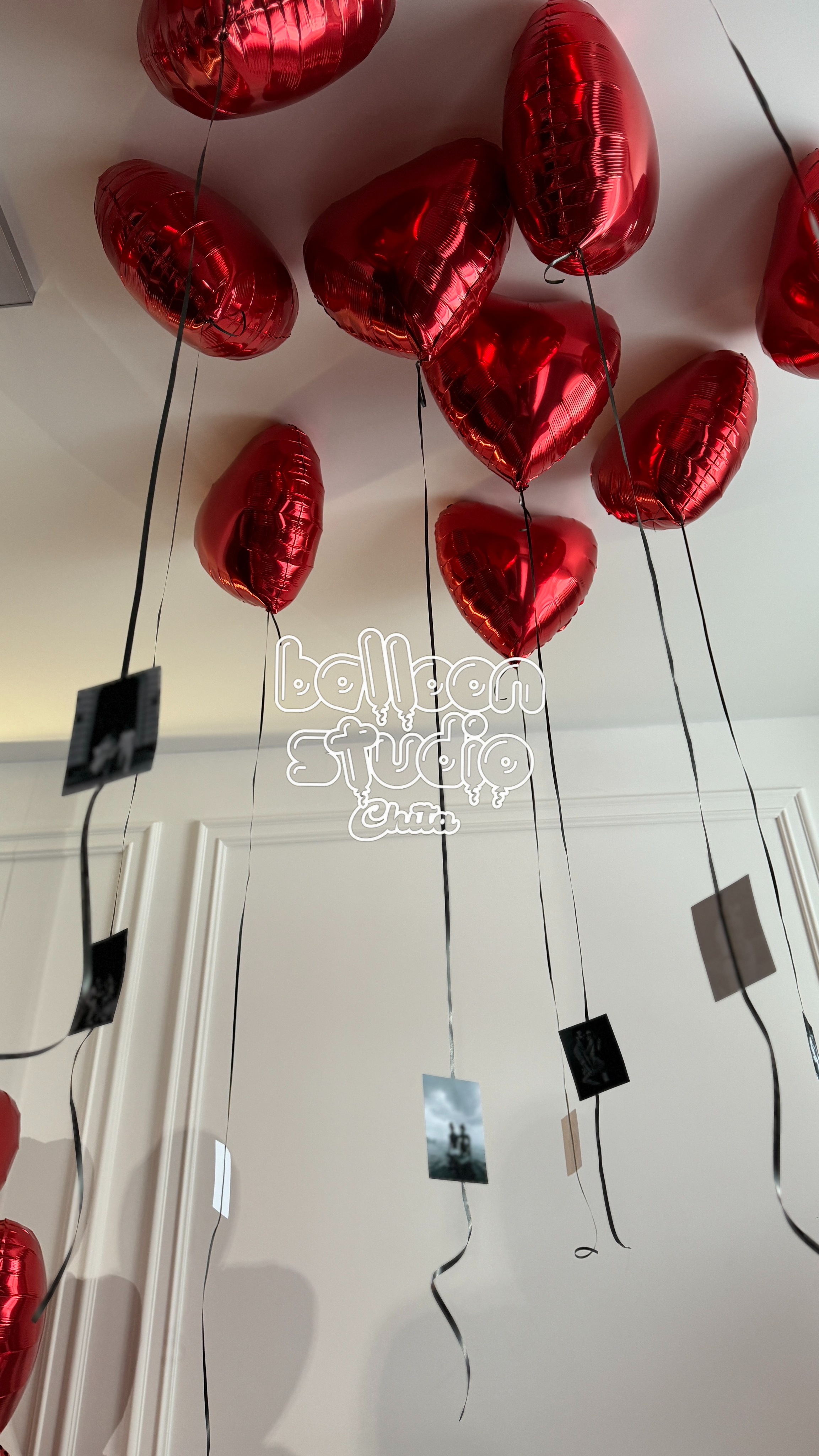 • 10 фольгированных сердечек под потолок с вашими фотографиями на ленточках