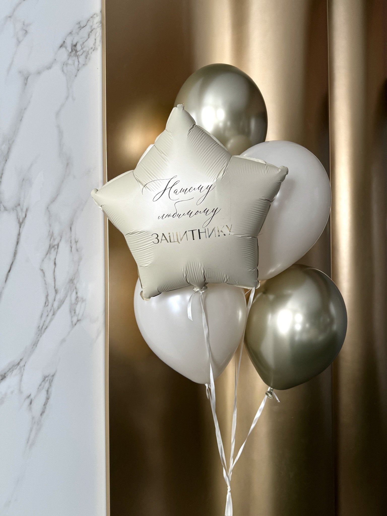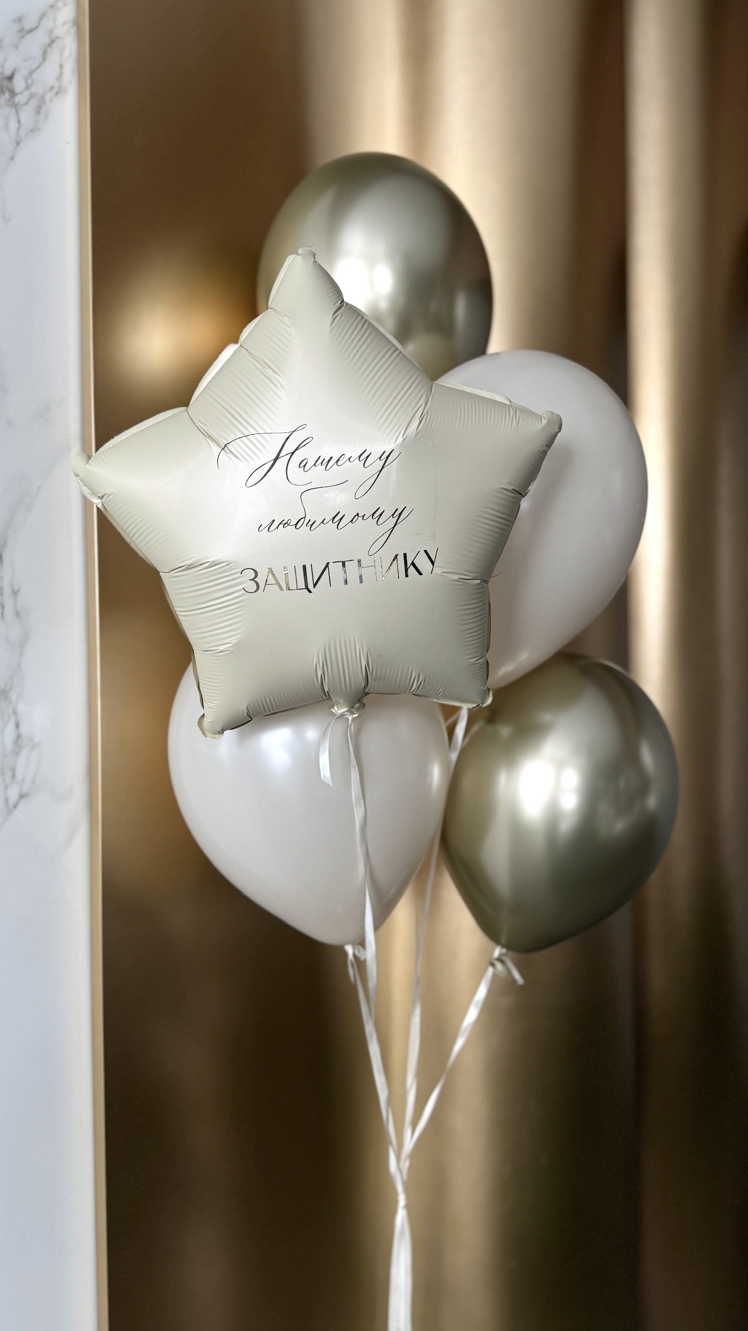 фонтан из 5 шаров на атласной ленте: