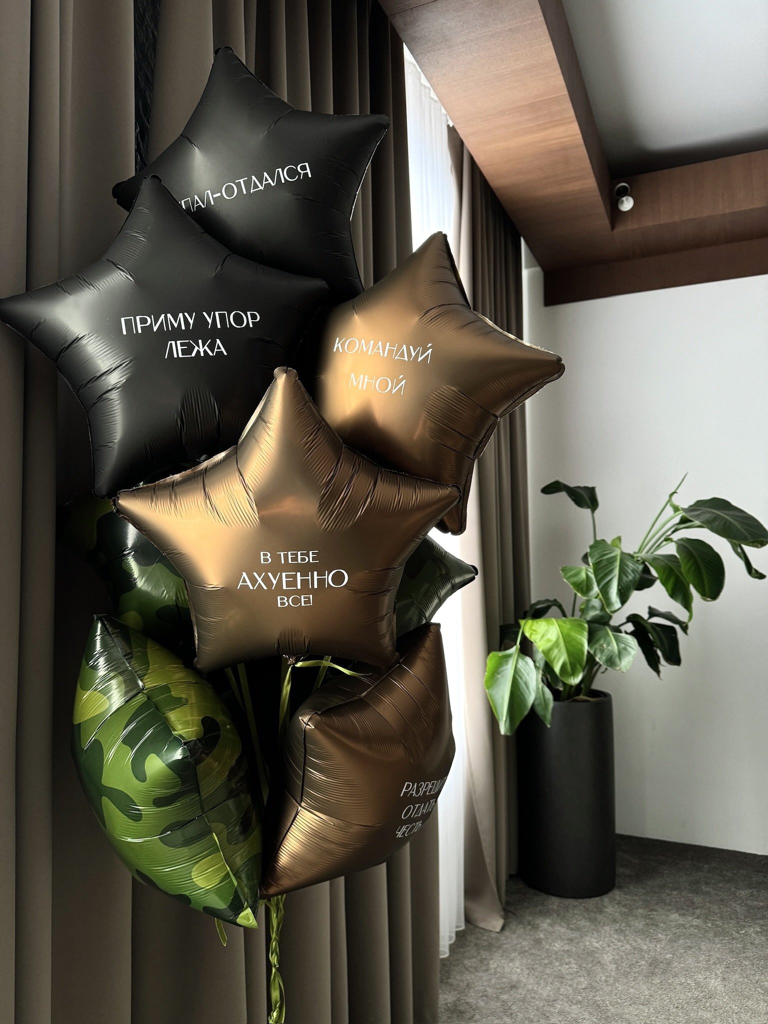 6 фольгированных шаров в форме звезд с индивидуальными надписями: