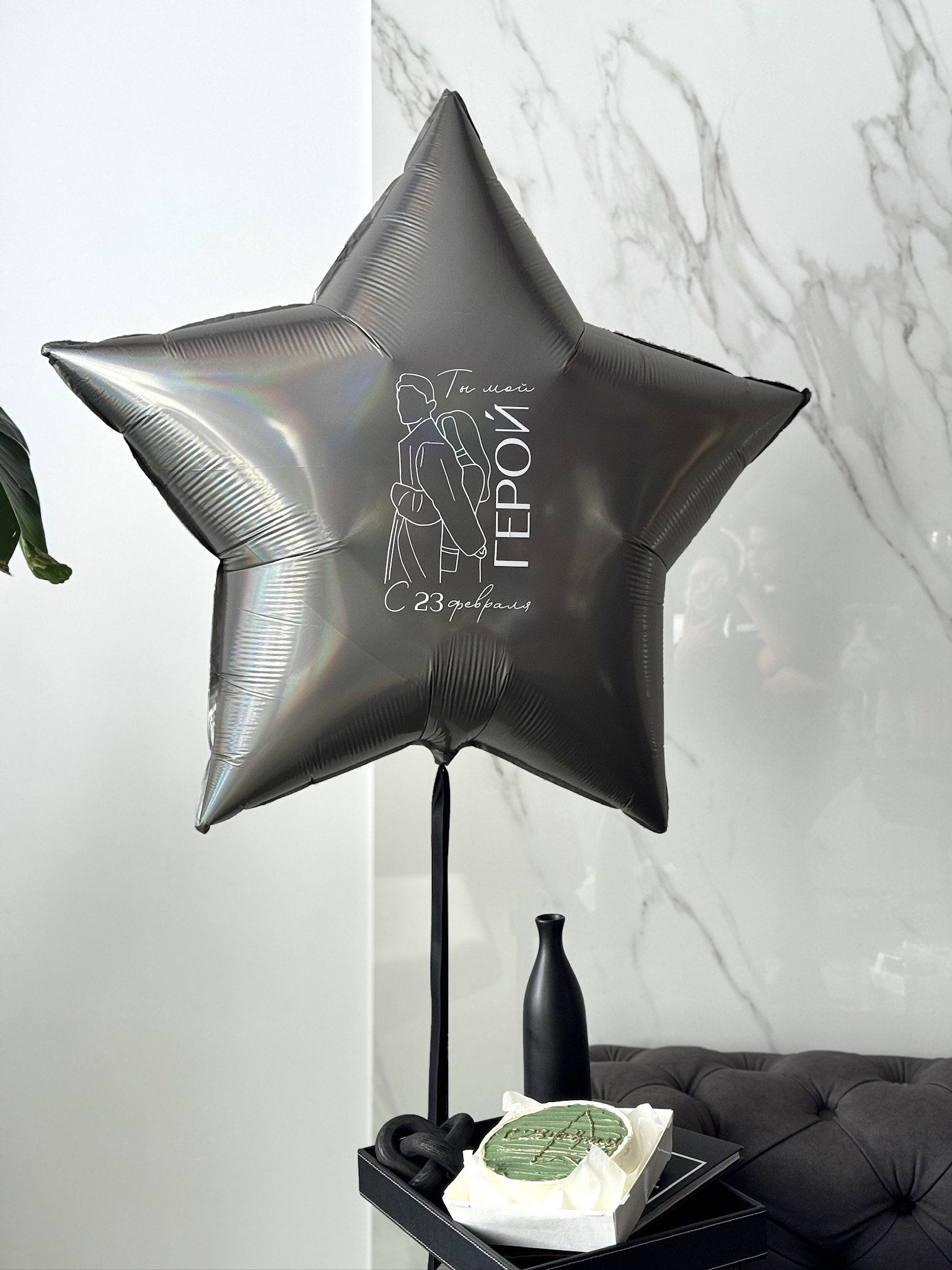фольгированный шар 91см в виде звезды с индивидуальной надписью