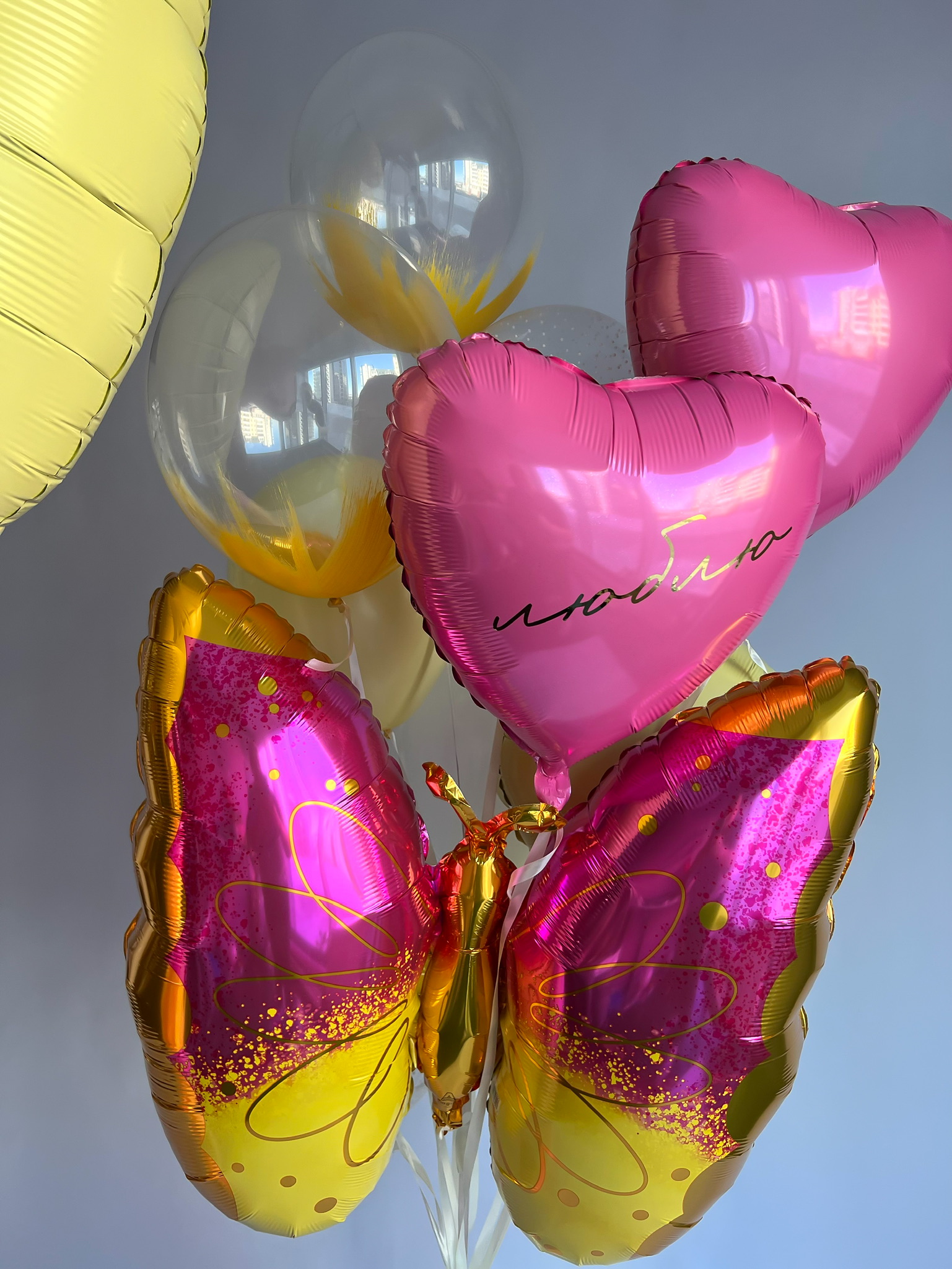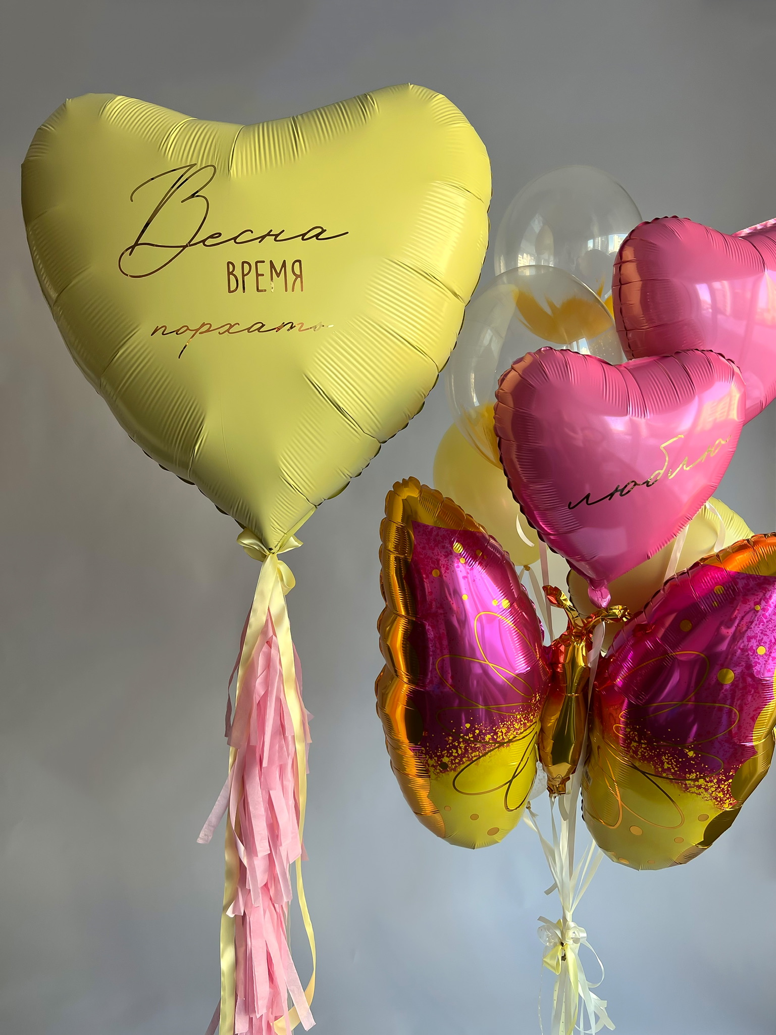 1 сердце 36" грабо желтый макарунс + надпись золото зерк.