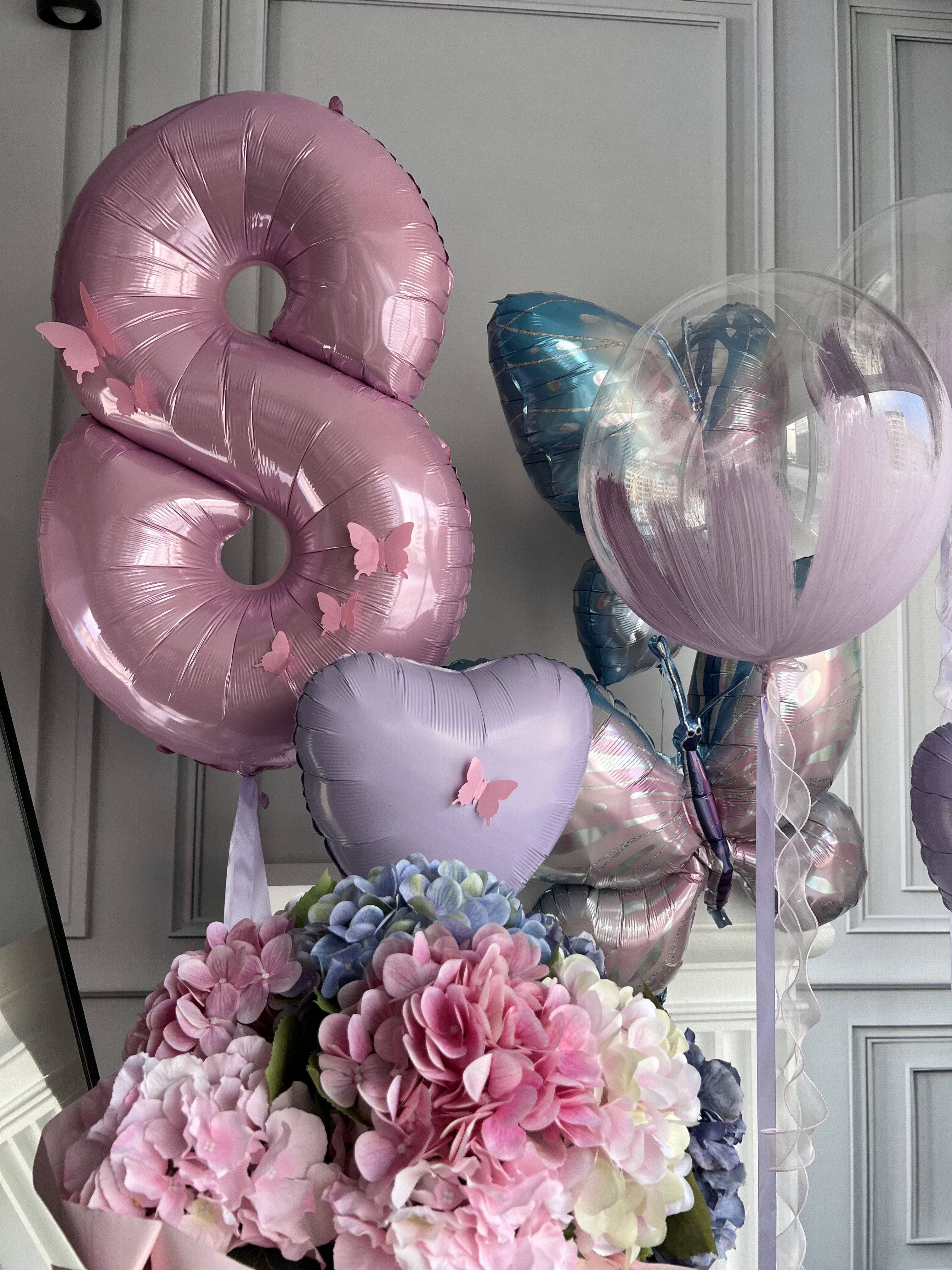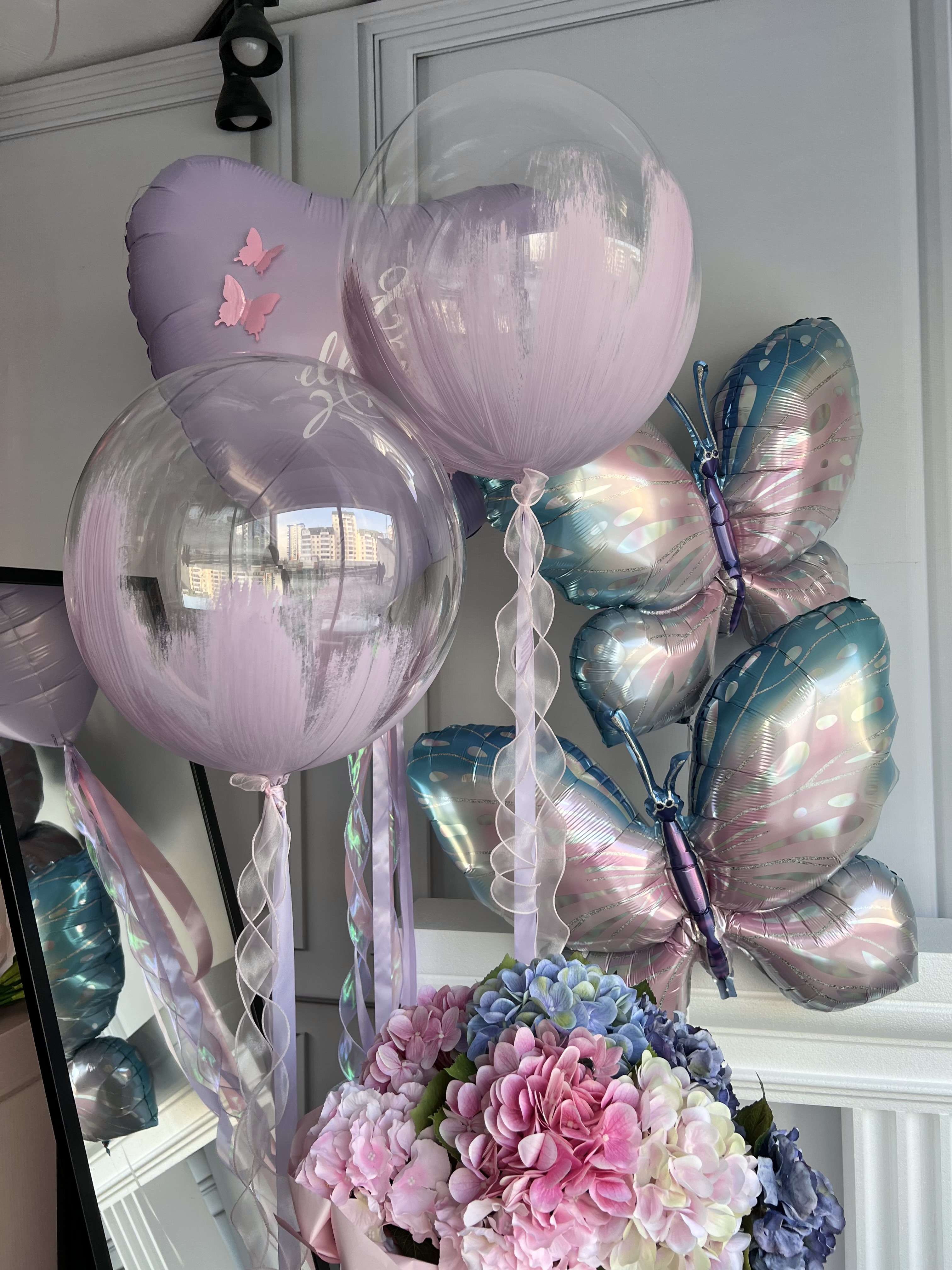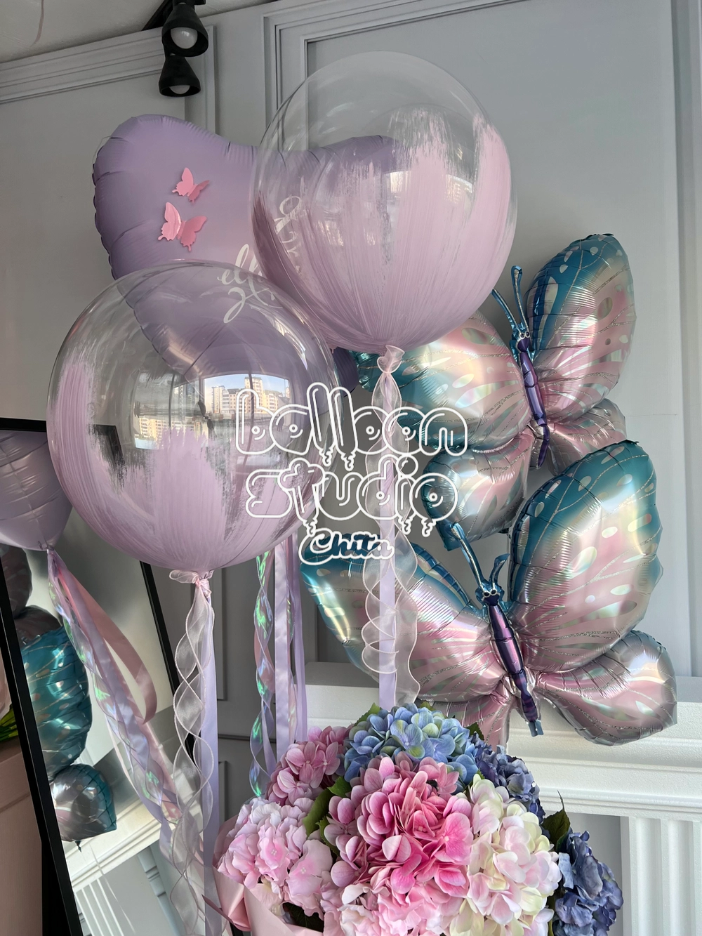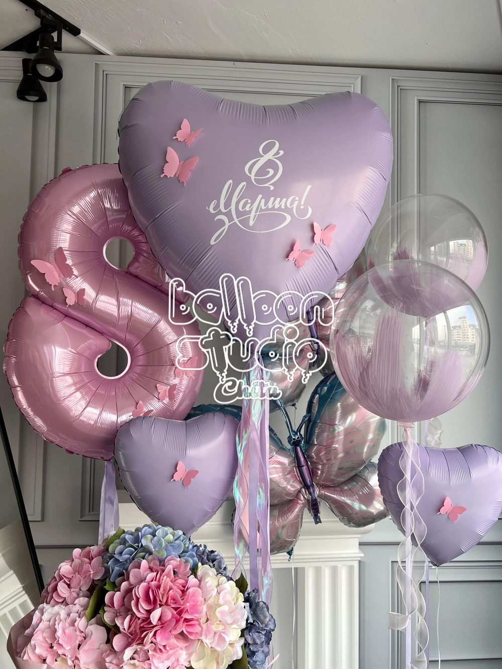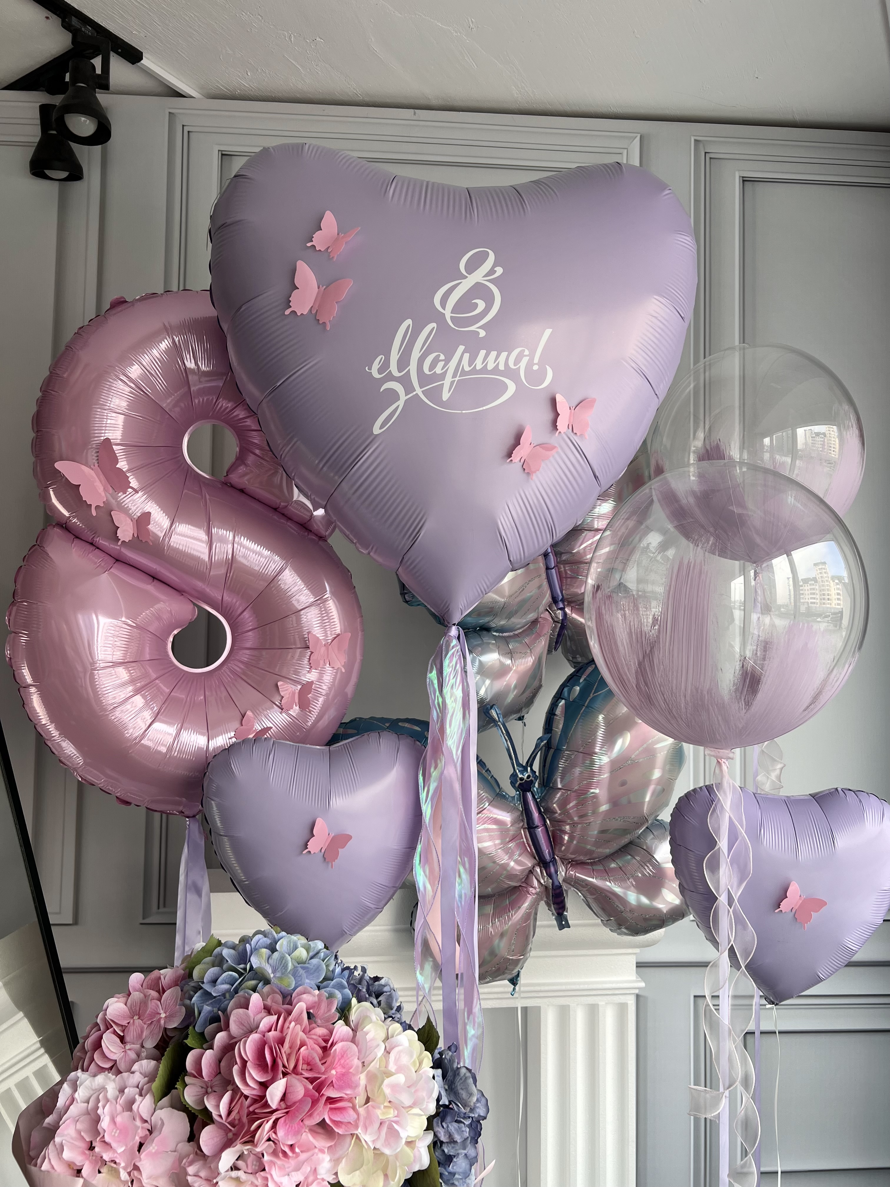 1 сердце 36" ГРАБО «сиреневый макарунс» + бабочки «розовый» +