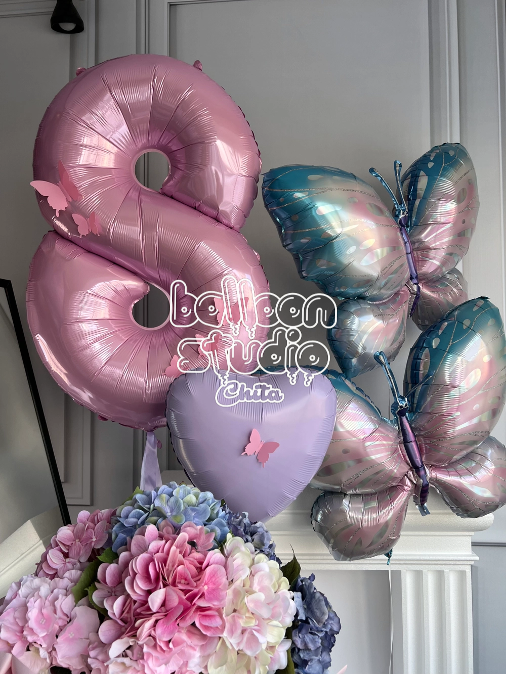 2 ЦИФРА 40" фм «розовый» + бабочки розовый - 1 шт
