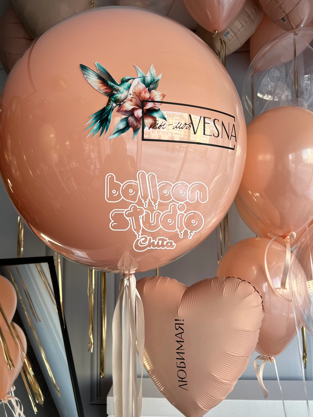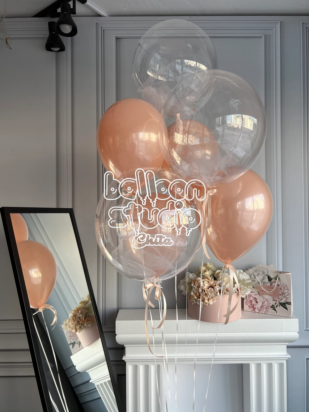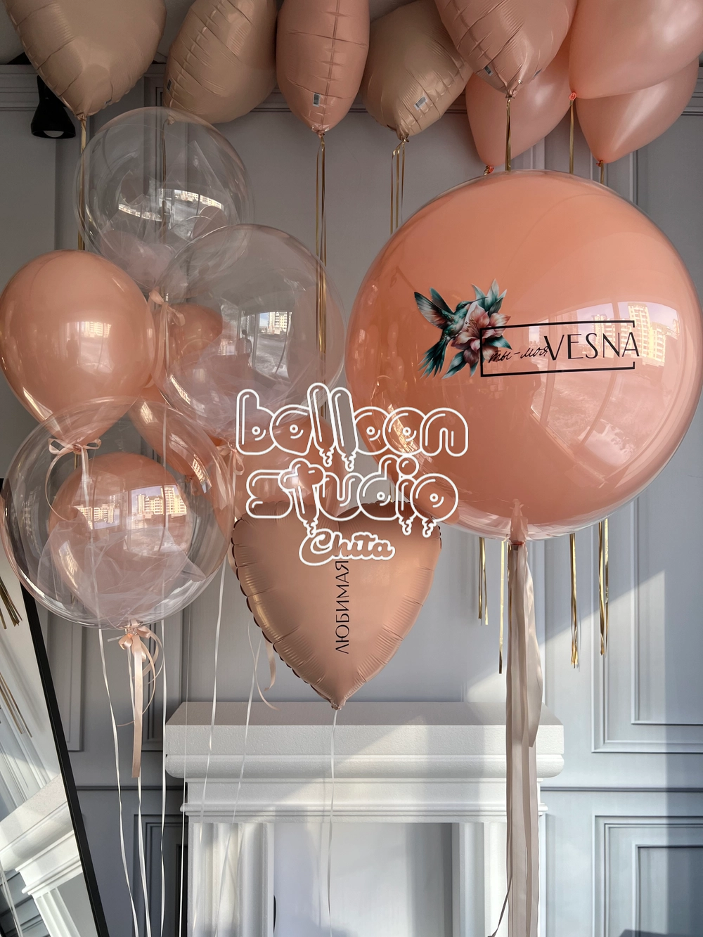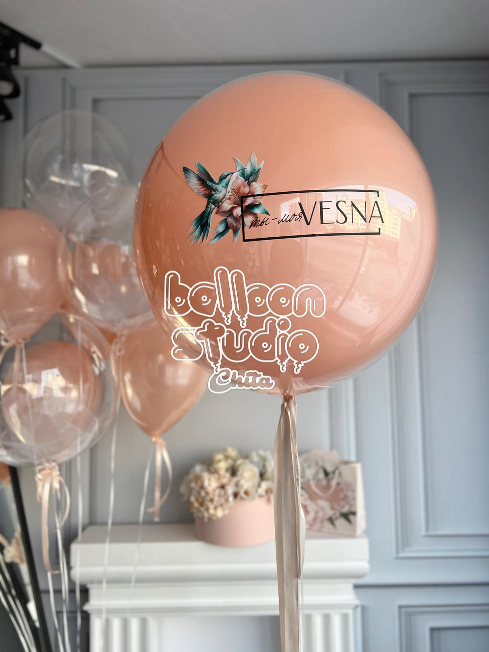 1 24" стеклянный шар; сверху баблс 36" китай, внутри латекс 24"