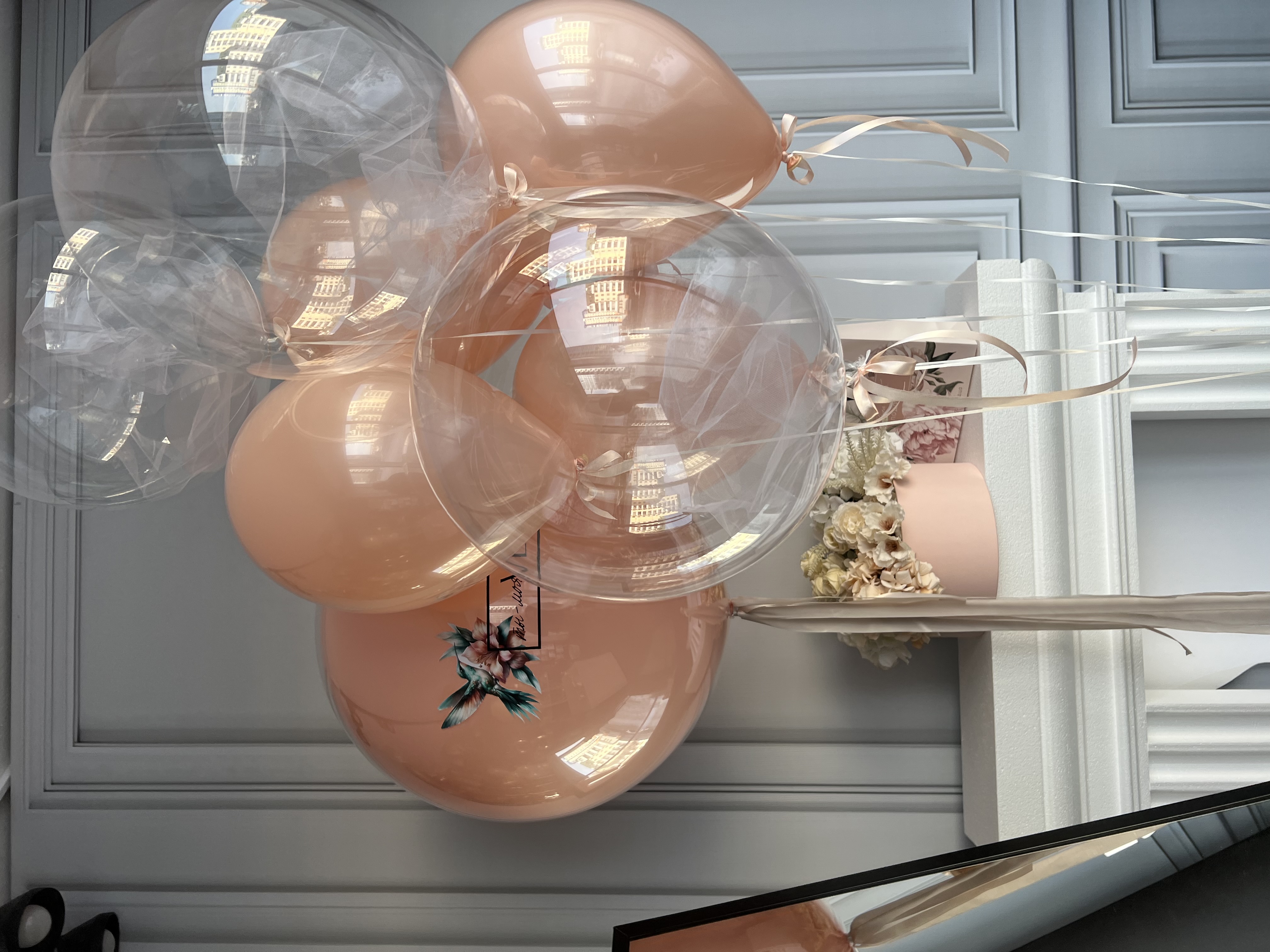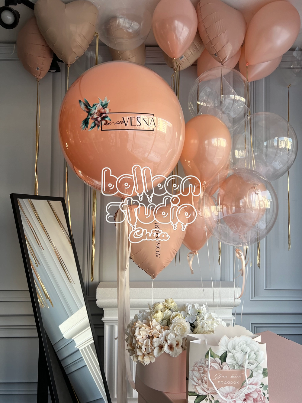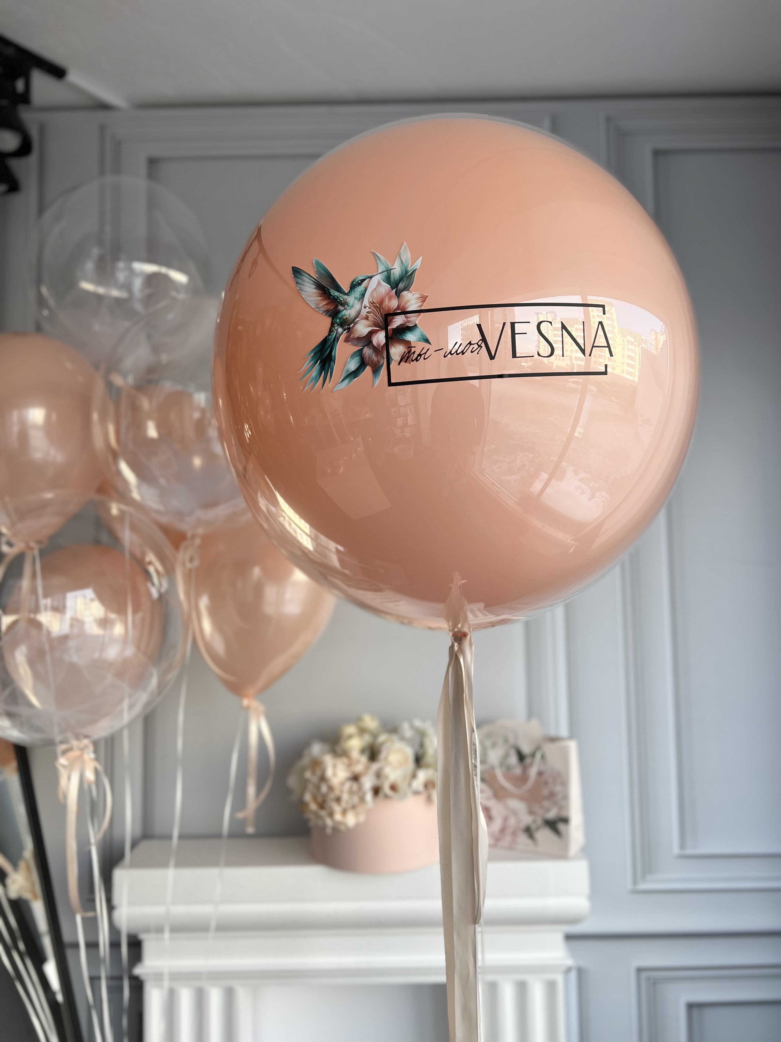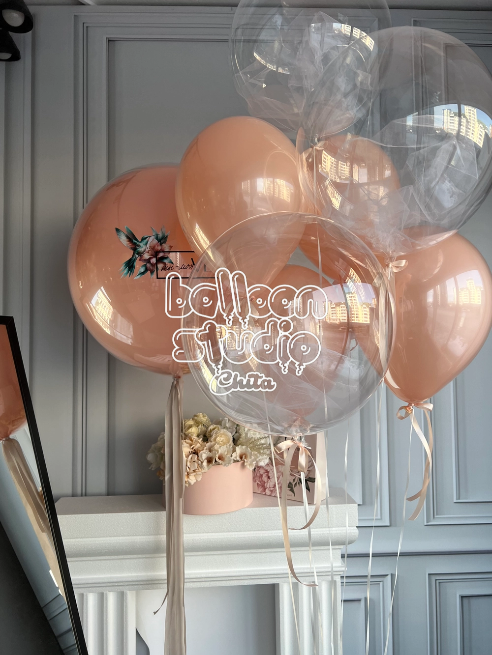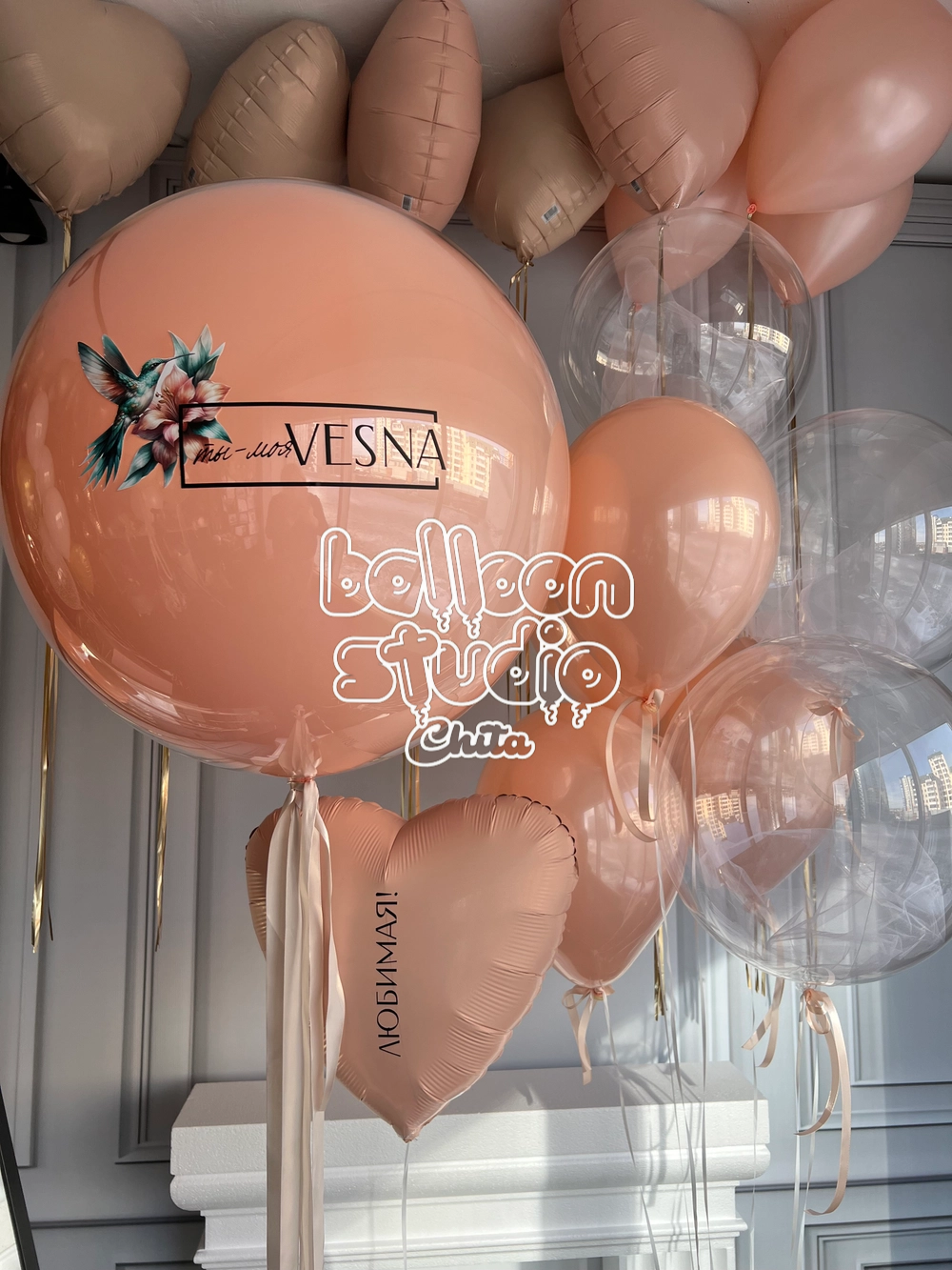 1 24" стеклянный шар; сверху баблс 36" китай, внутри латекс 24"