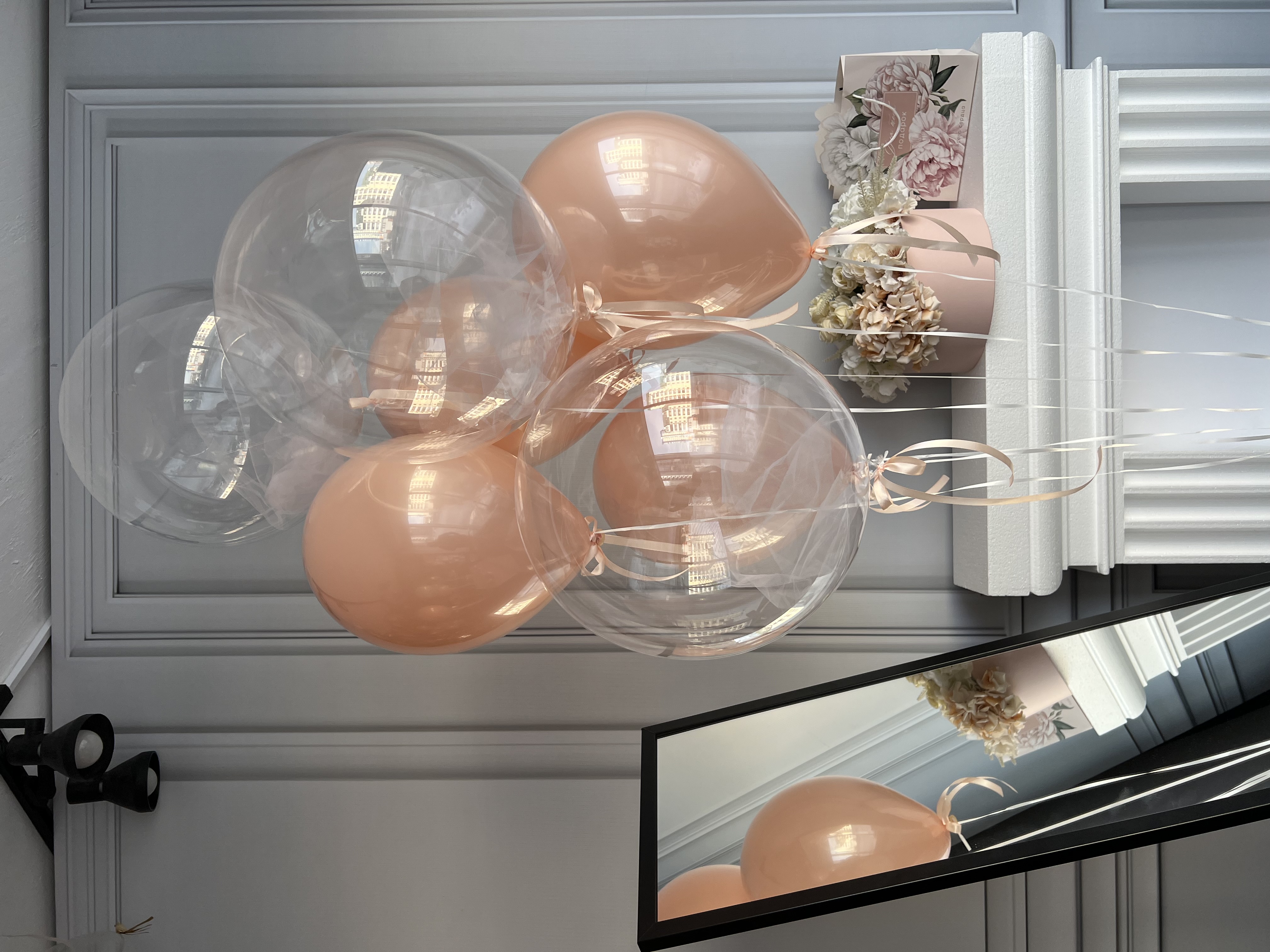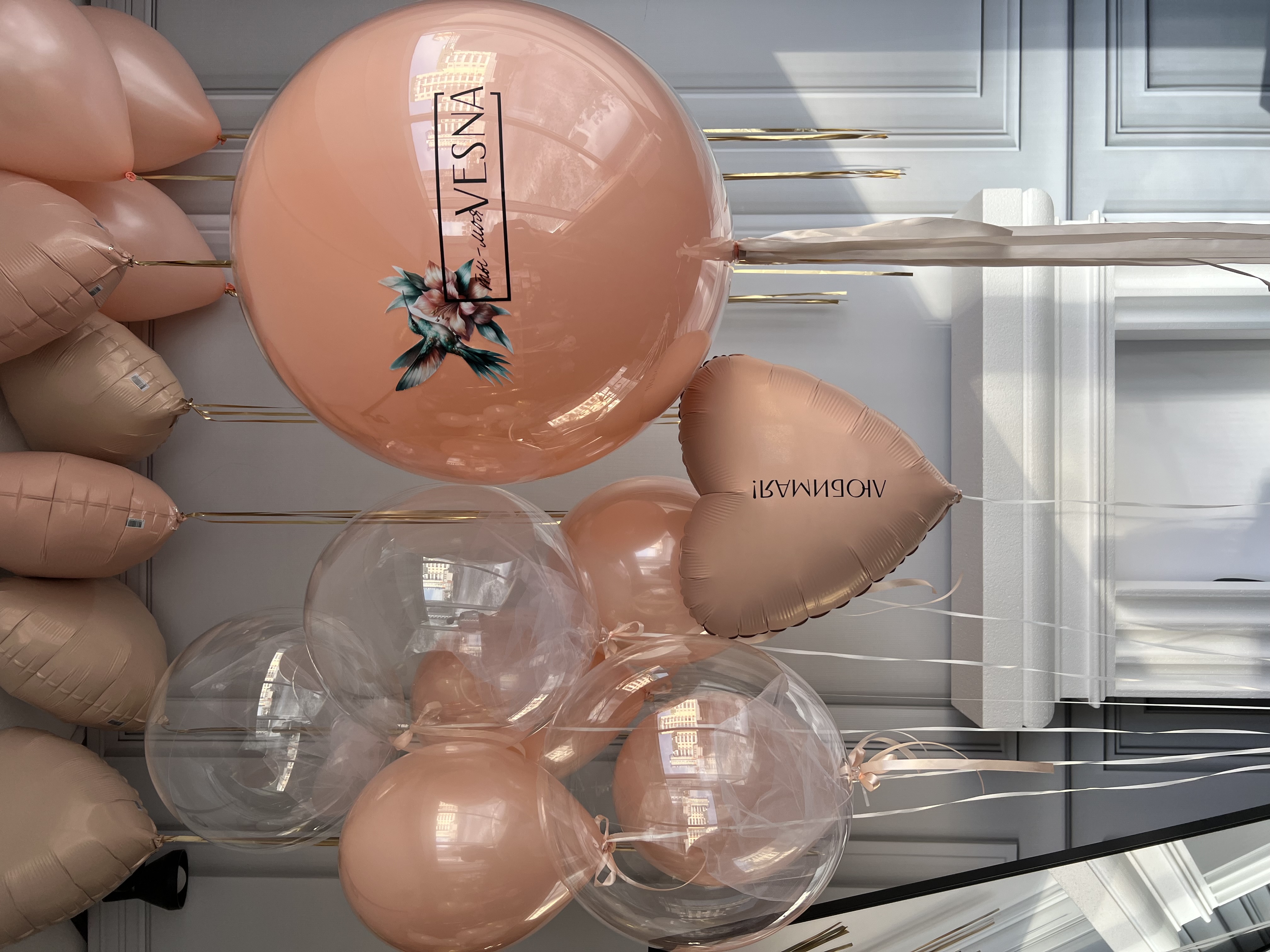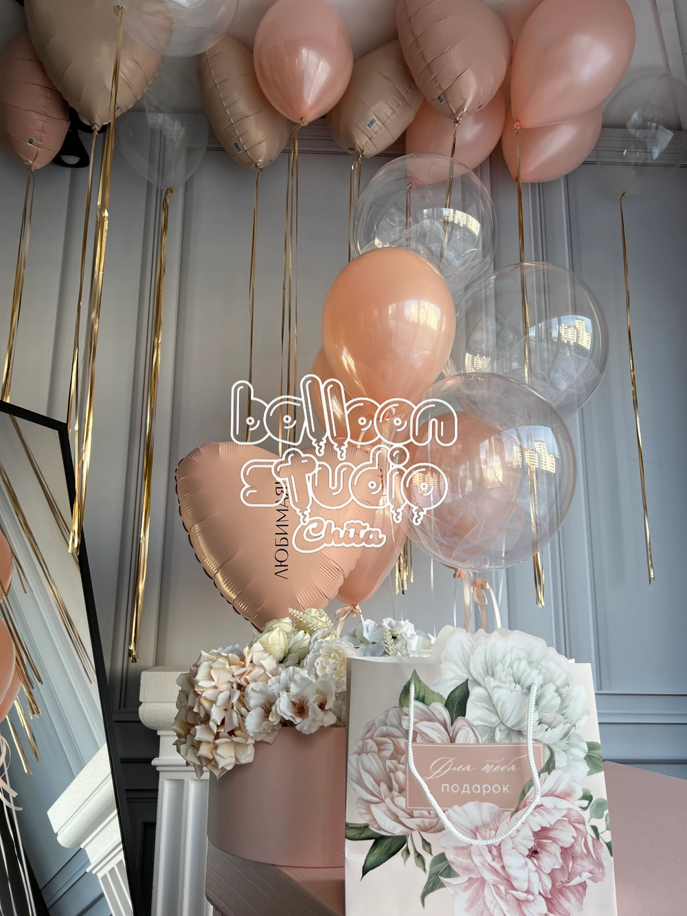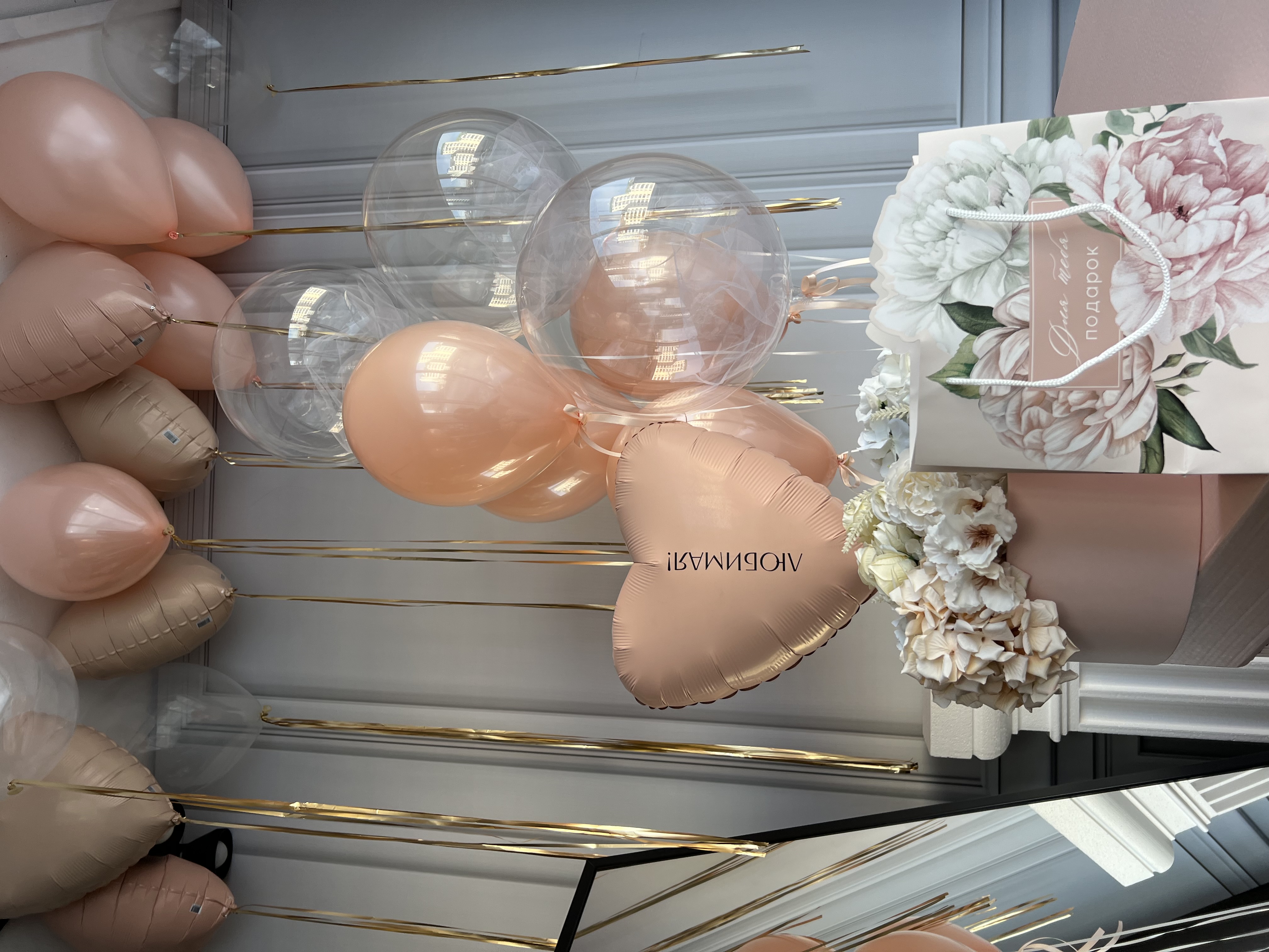 1 24" стеклянный шар; сверху баблс 36" китай, внутри латекс 24"