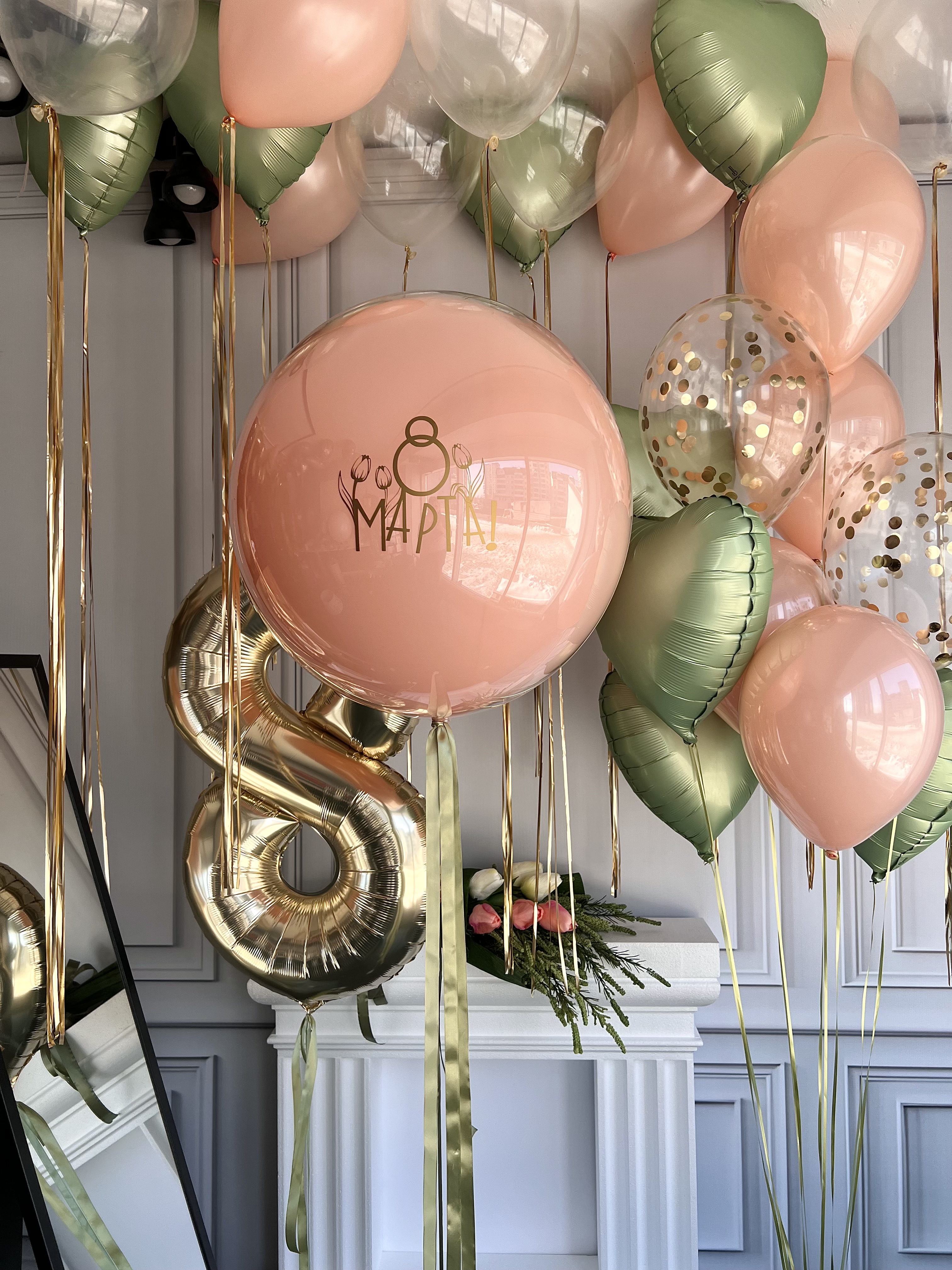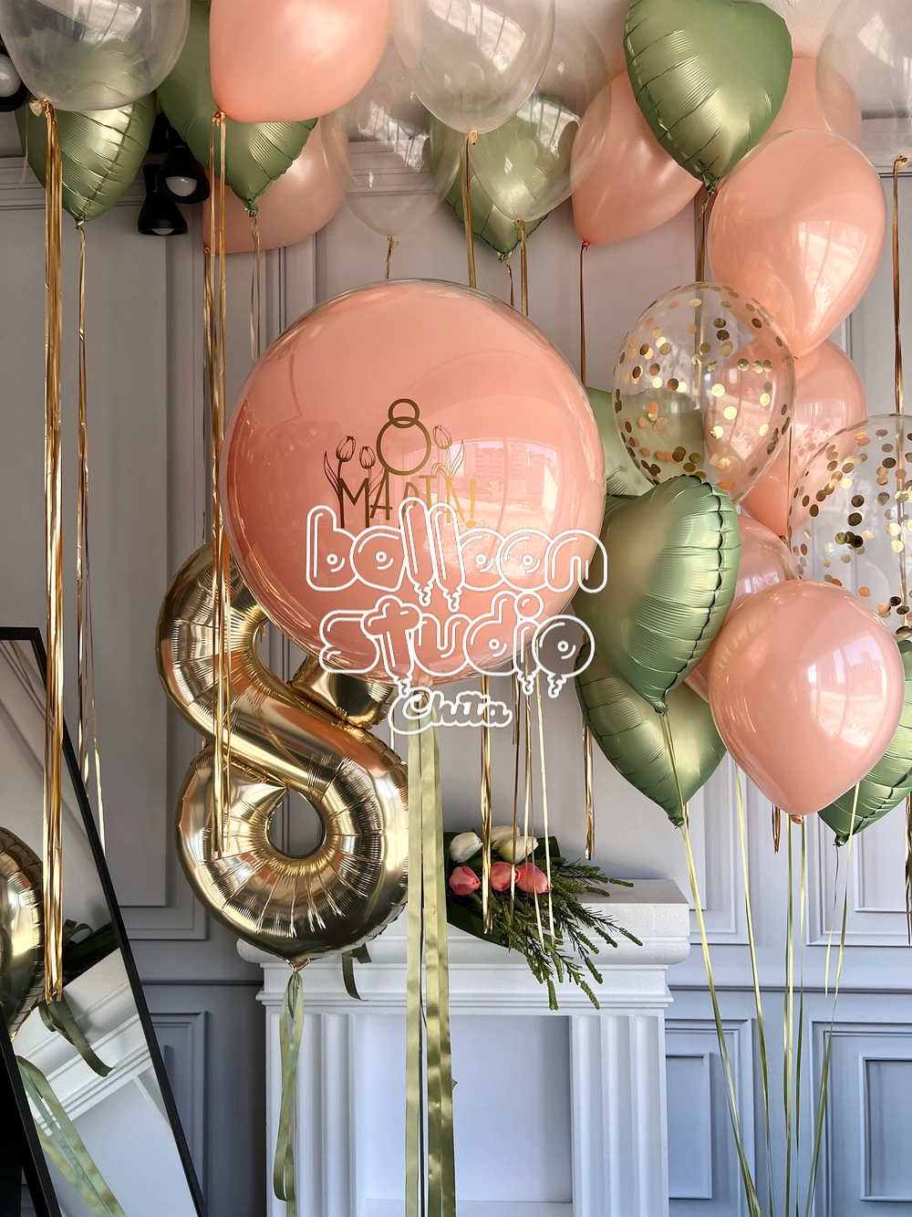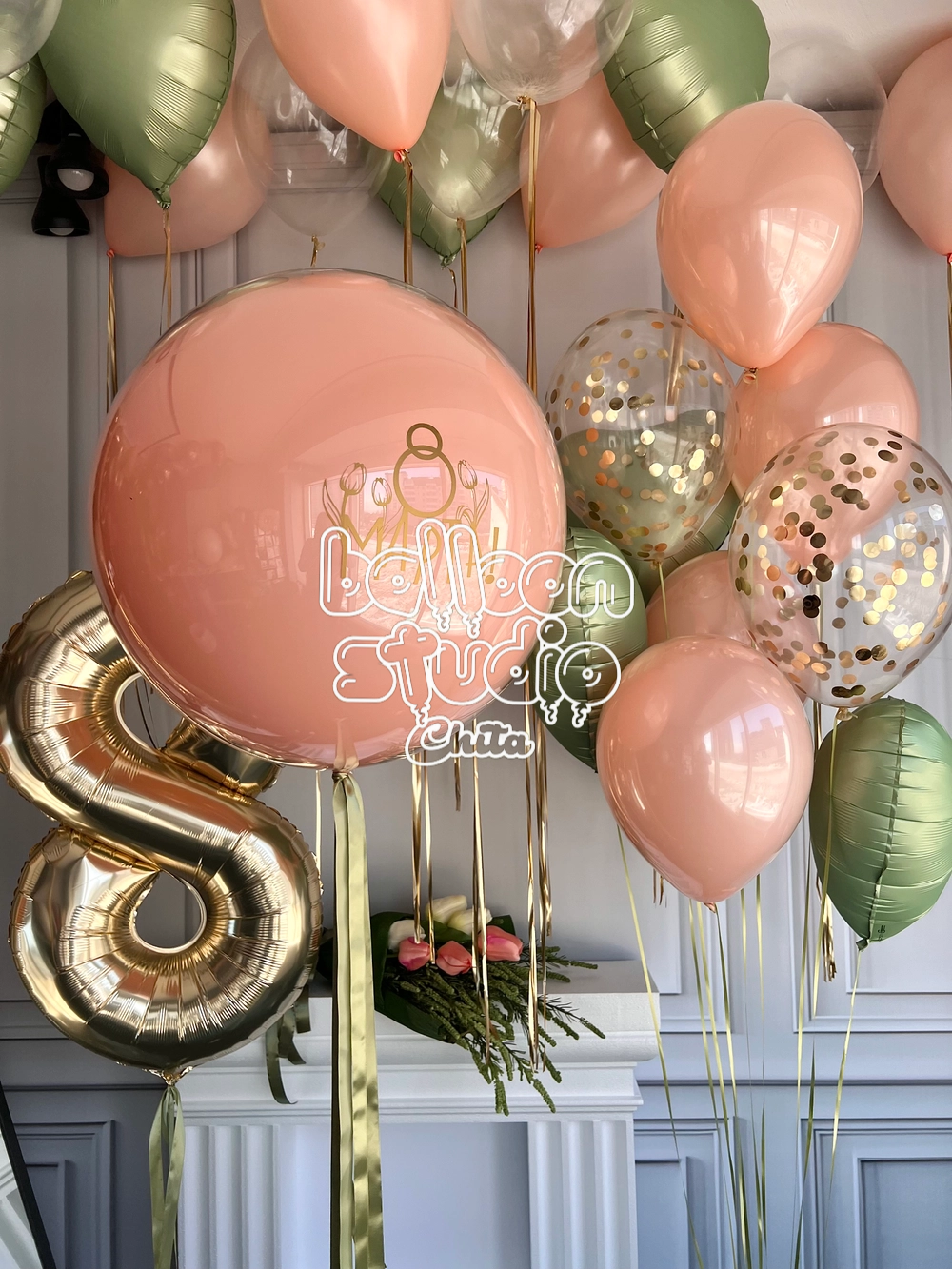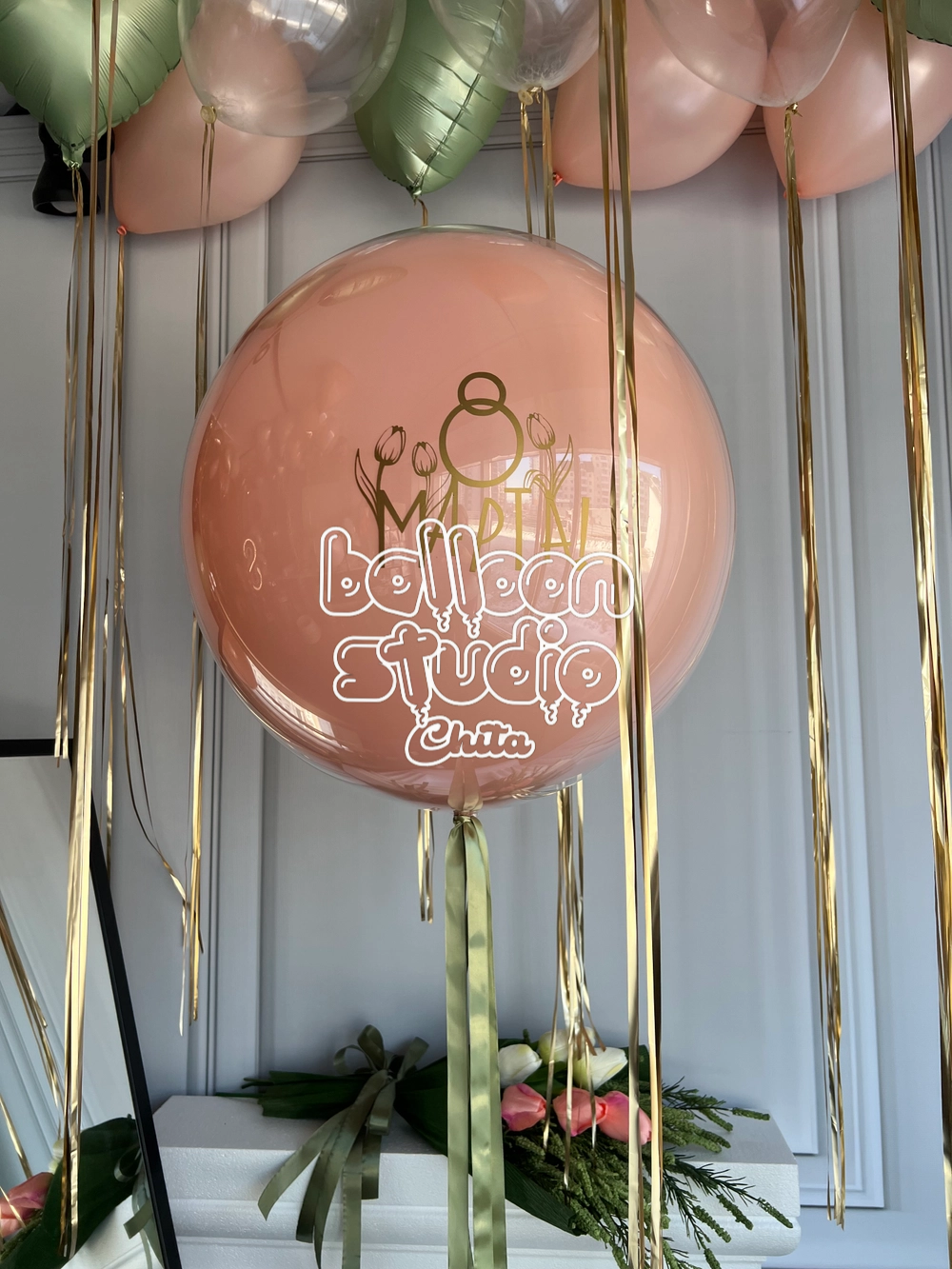 1 24" стеклянный шар; сверху баблс 36" китай, внутри латекс 24"