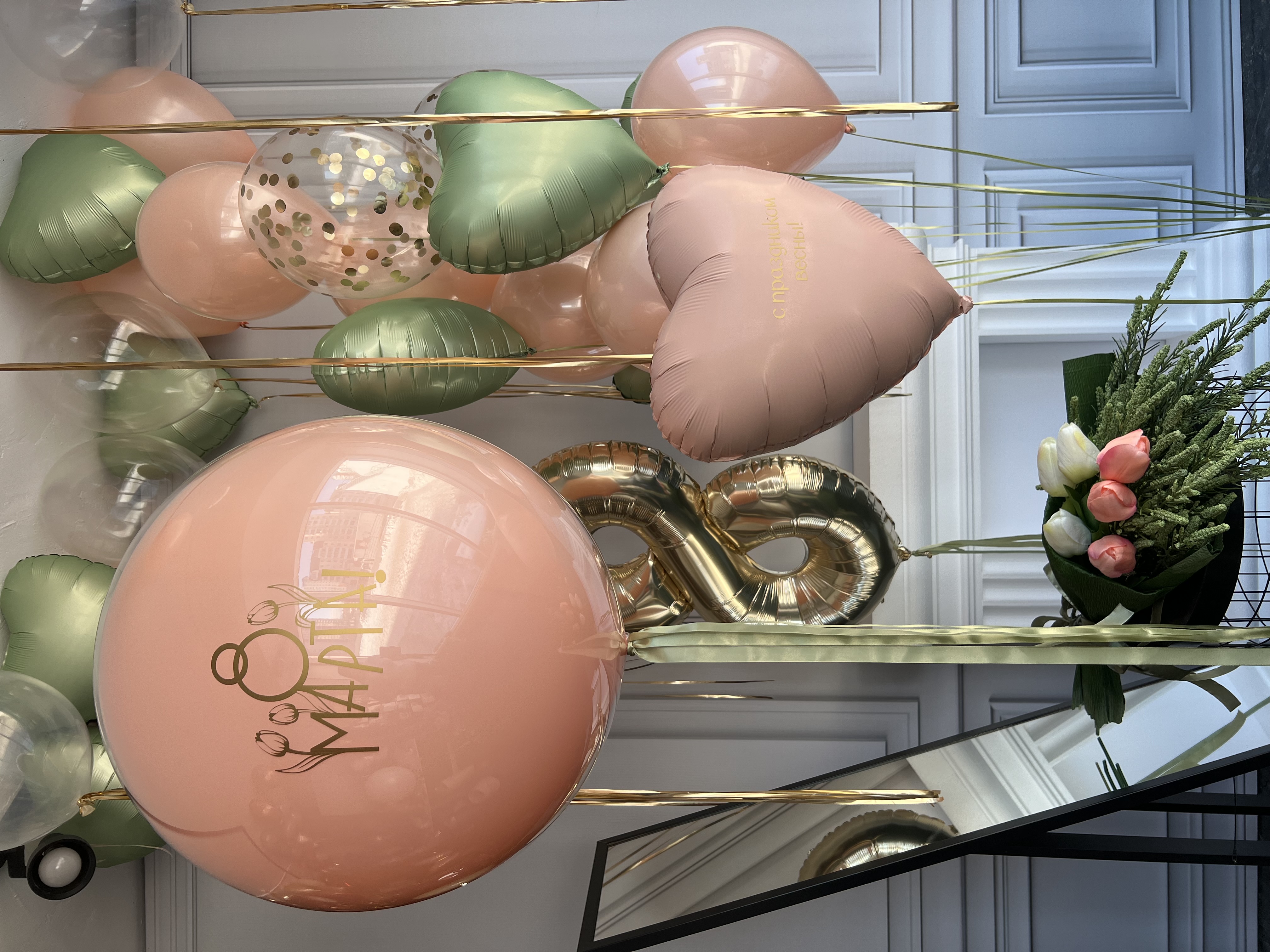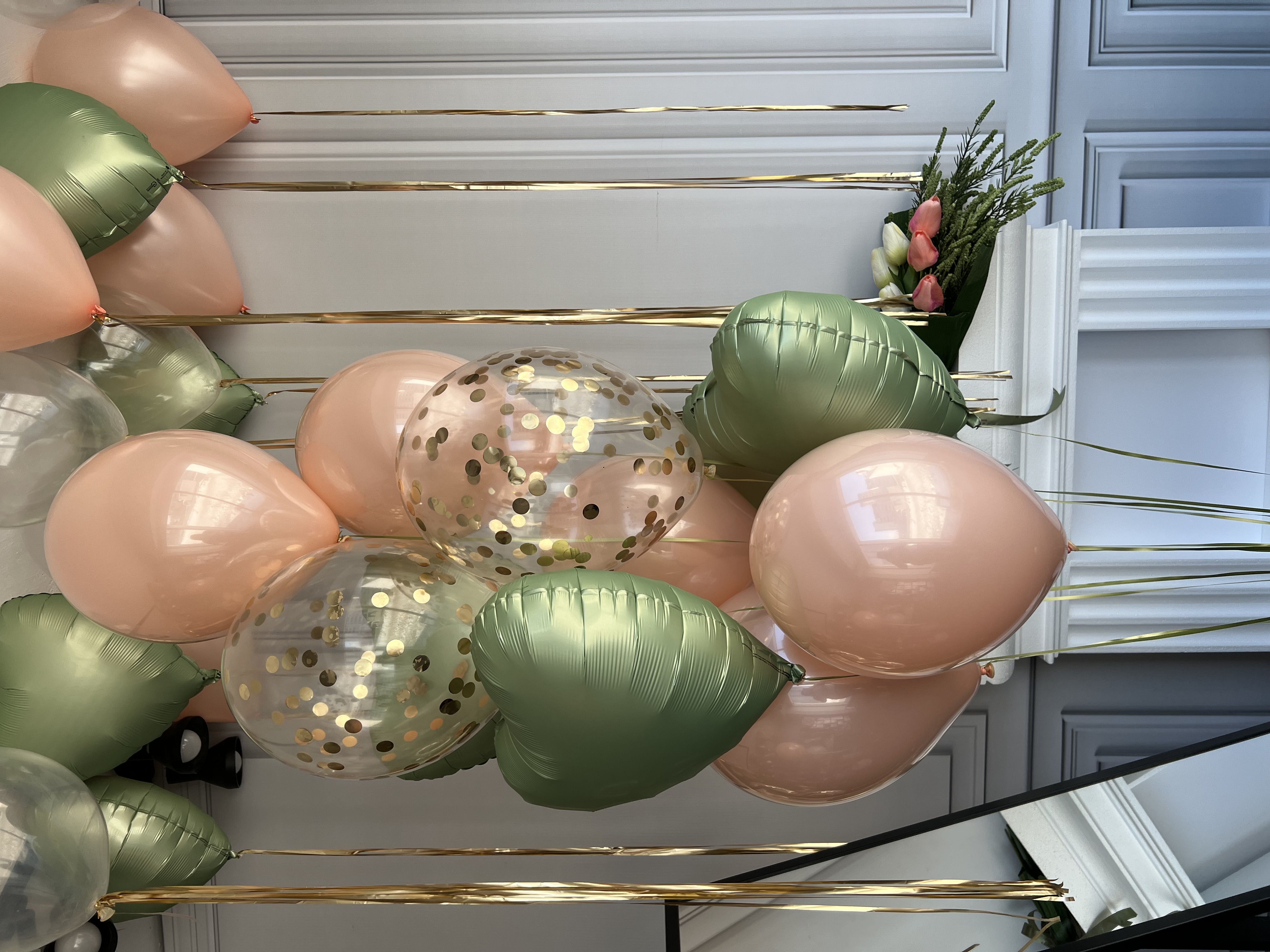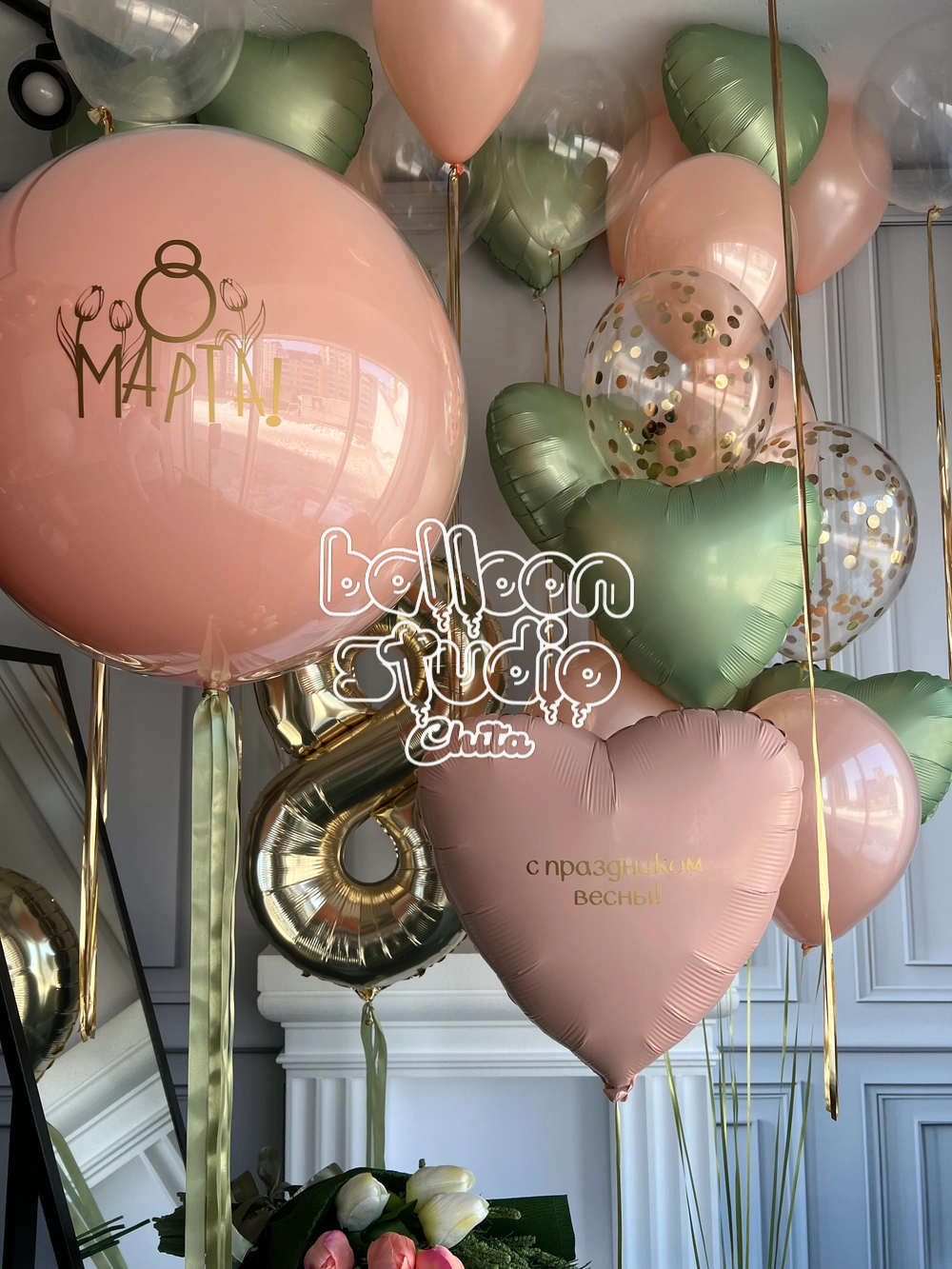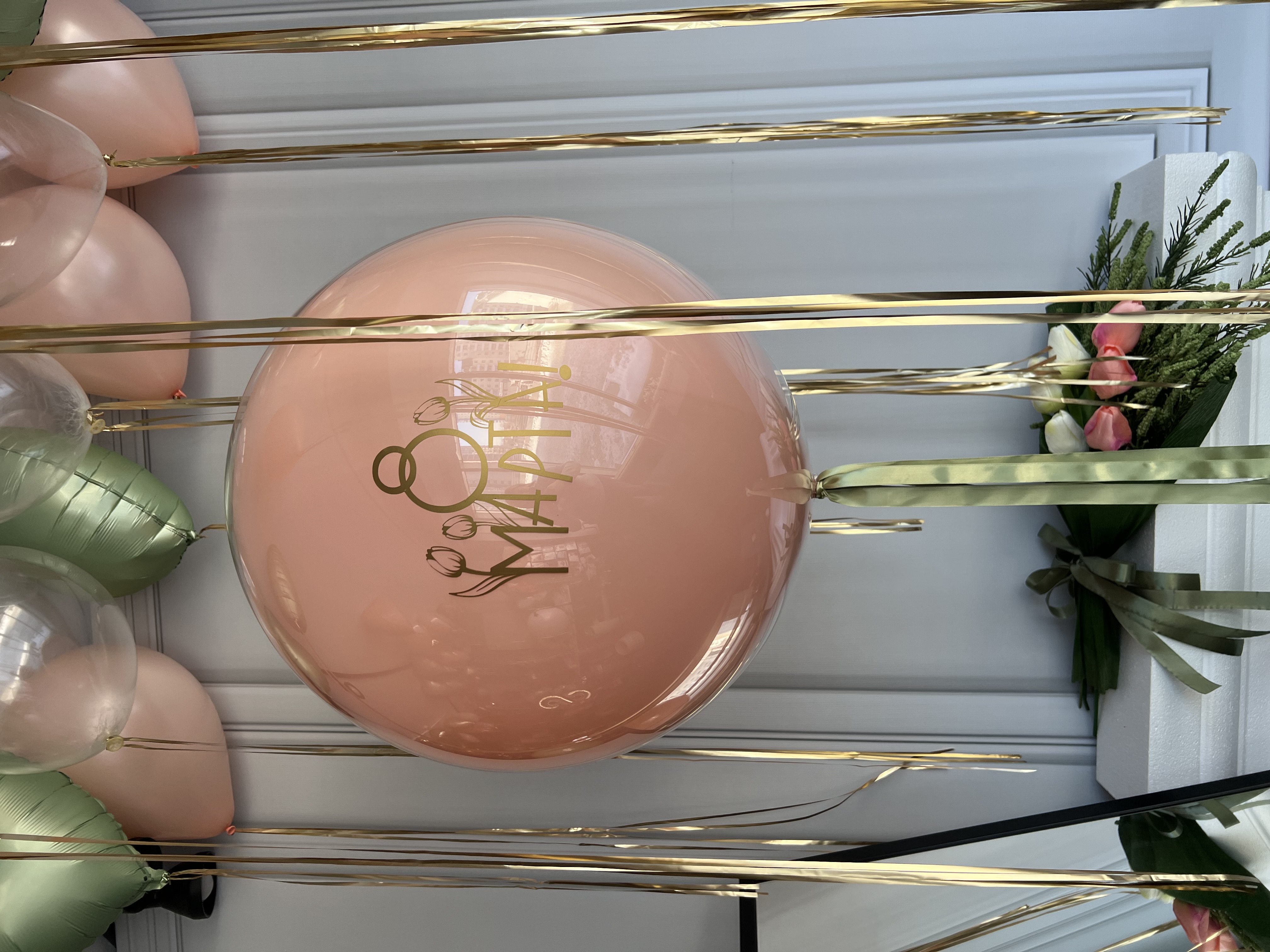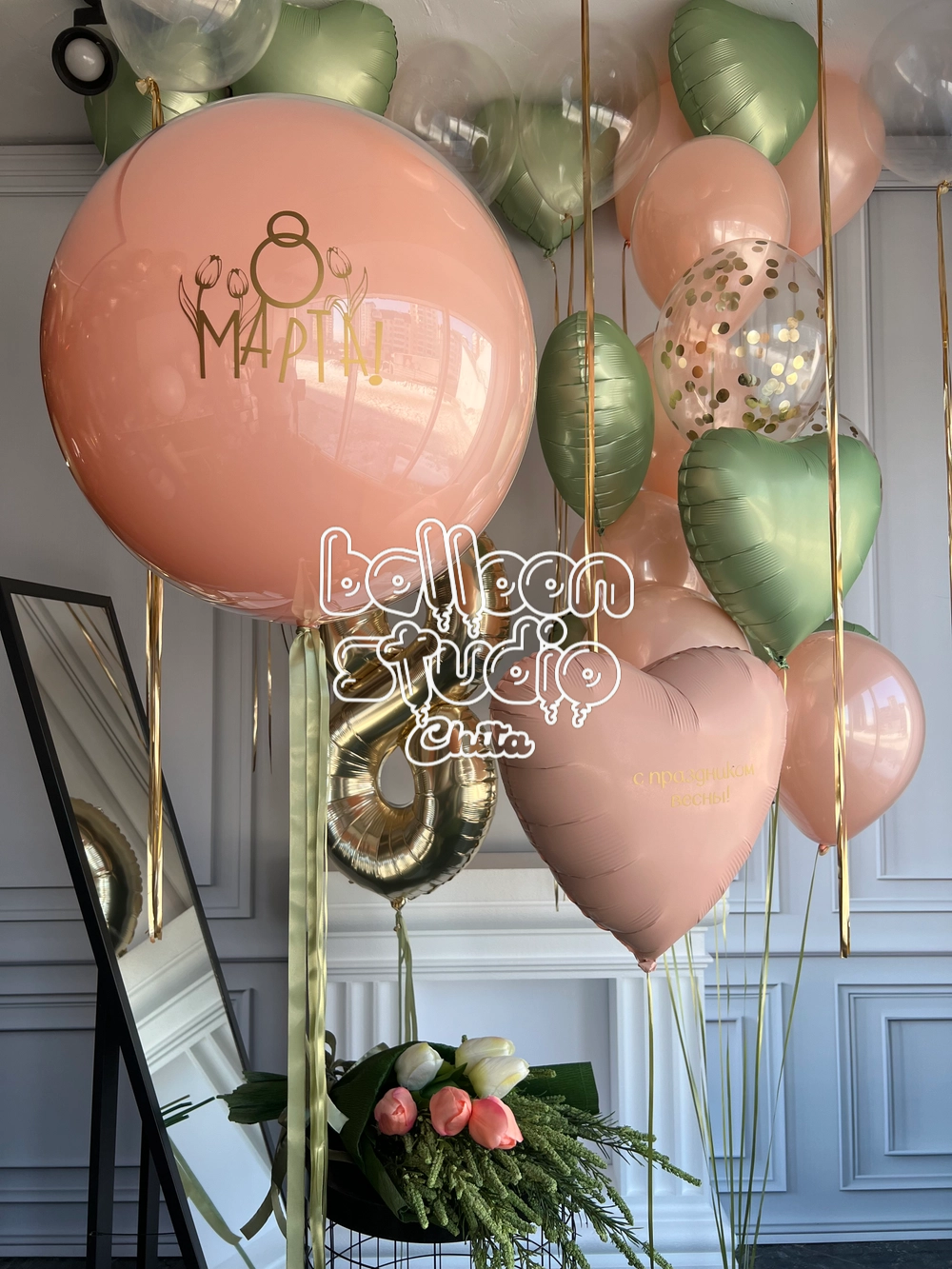 1 24" стеклянный шар; сверху баблс 36" китай, внутри латекс 24"