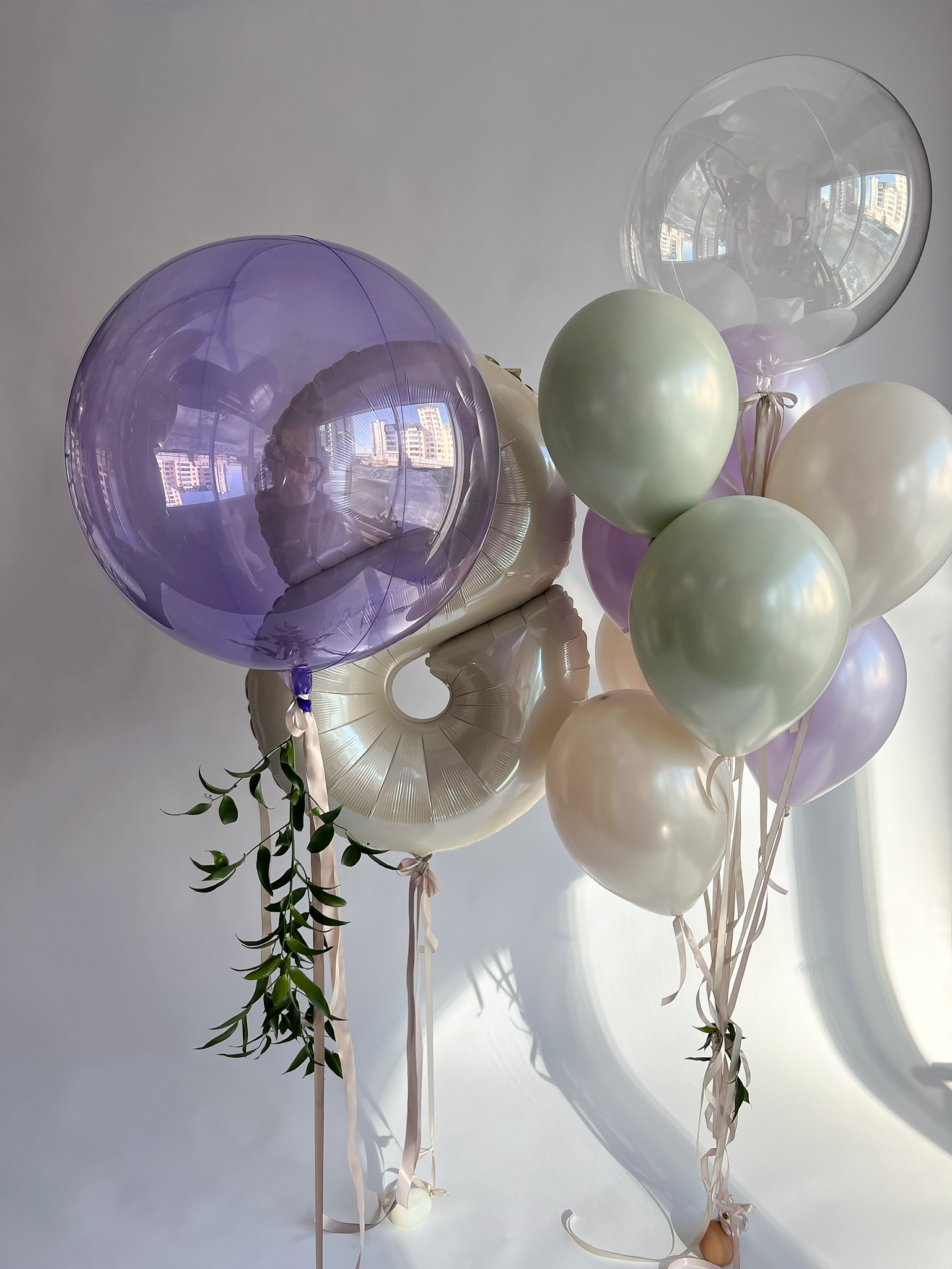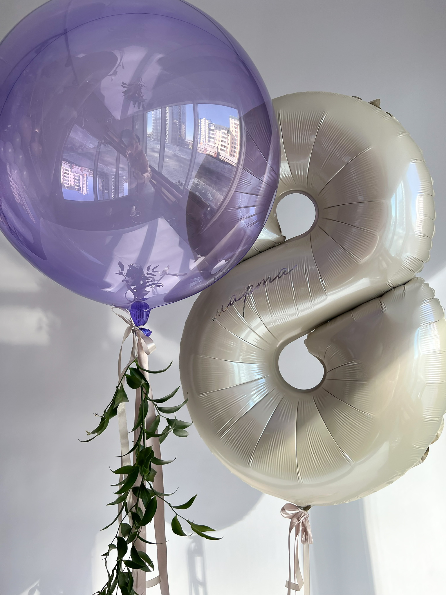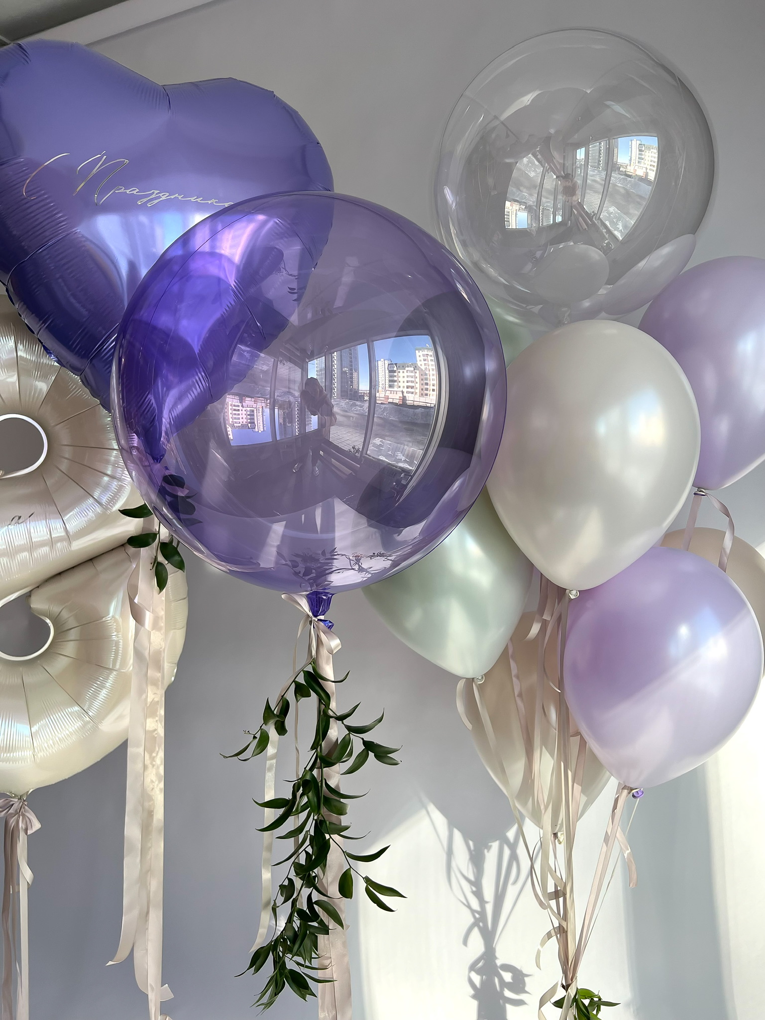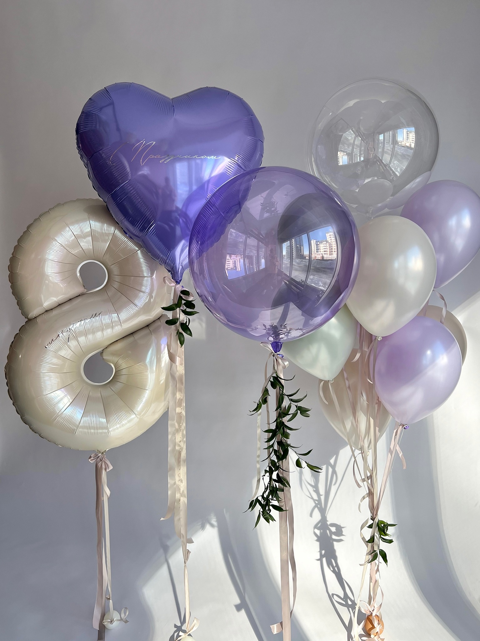 Сердце агура 30" сиреневый + надпись серебро зерк.