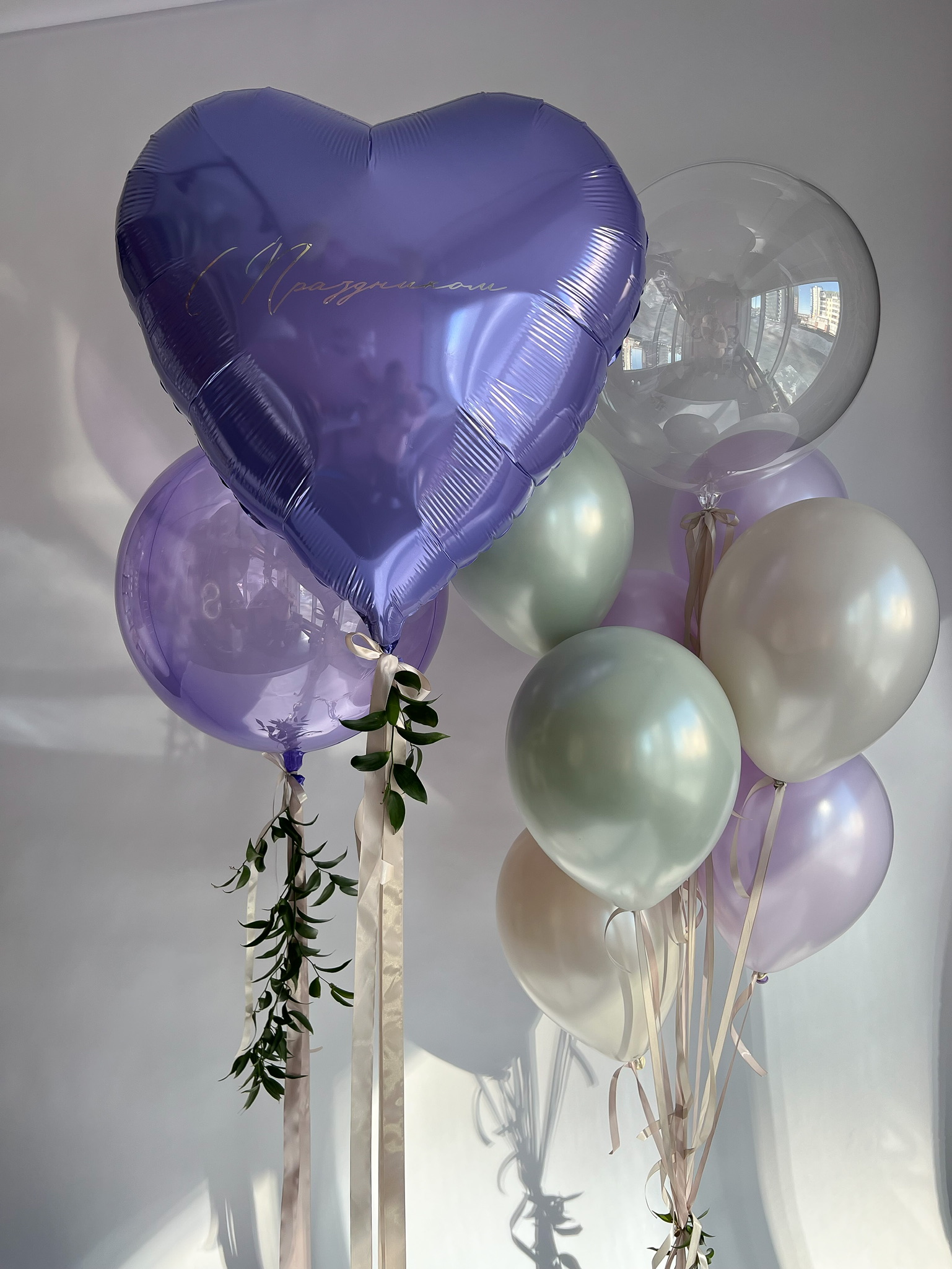 Сердце агура 30" сиреневый + надпись серебро зерк.