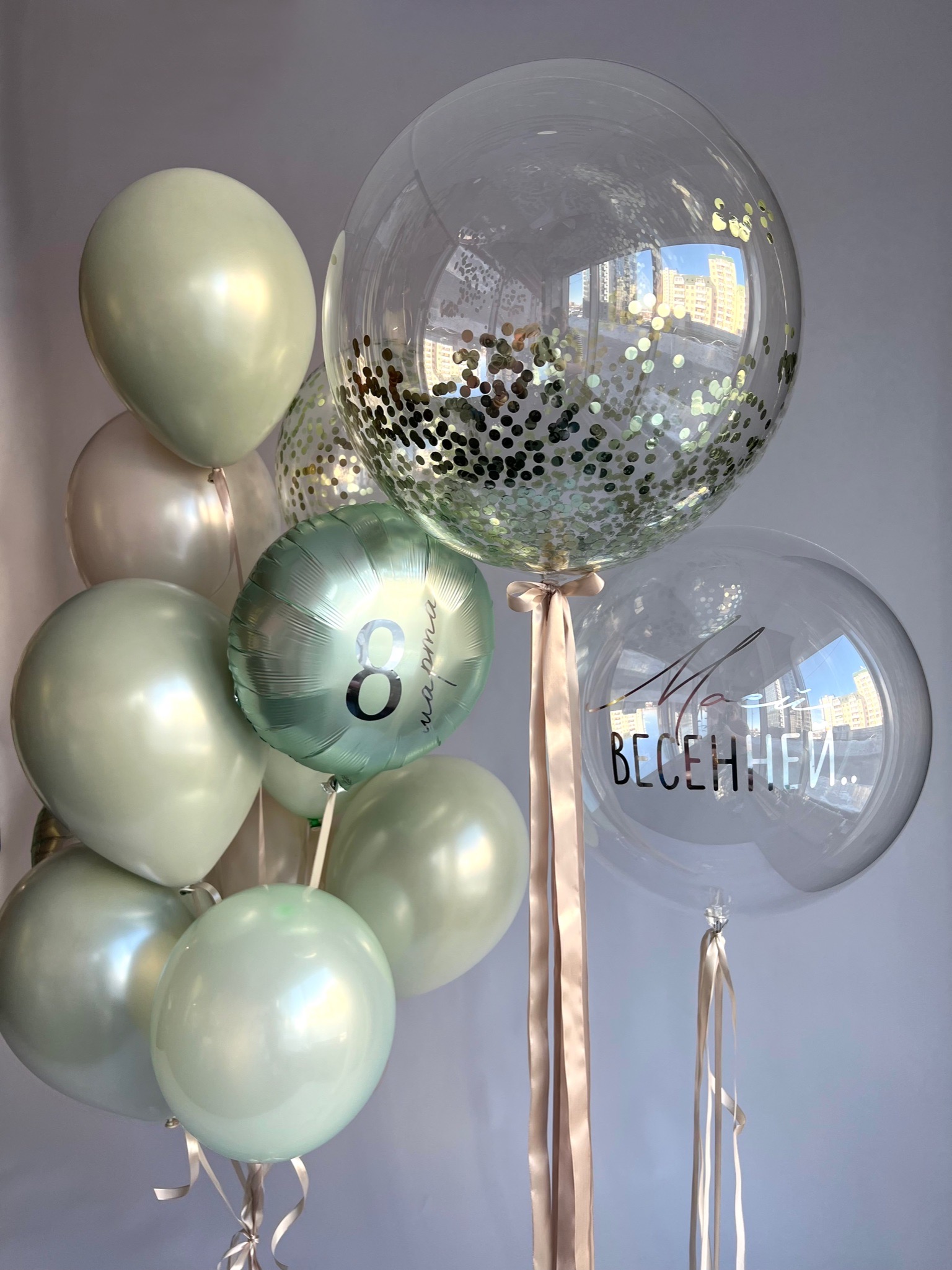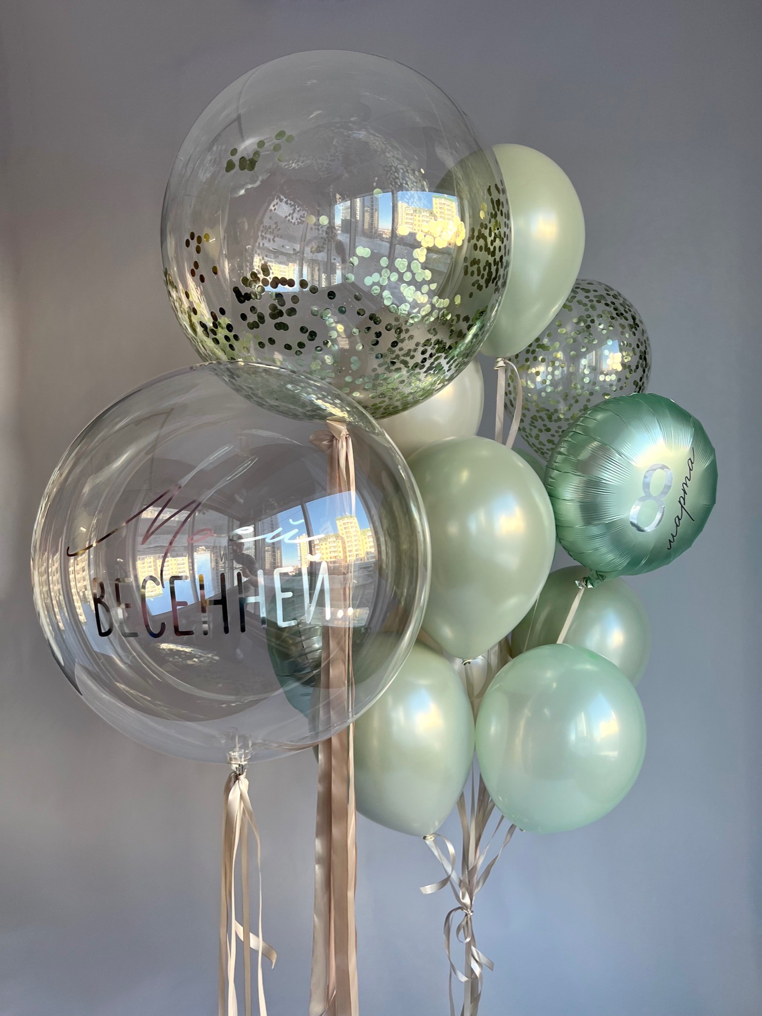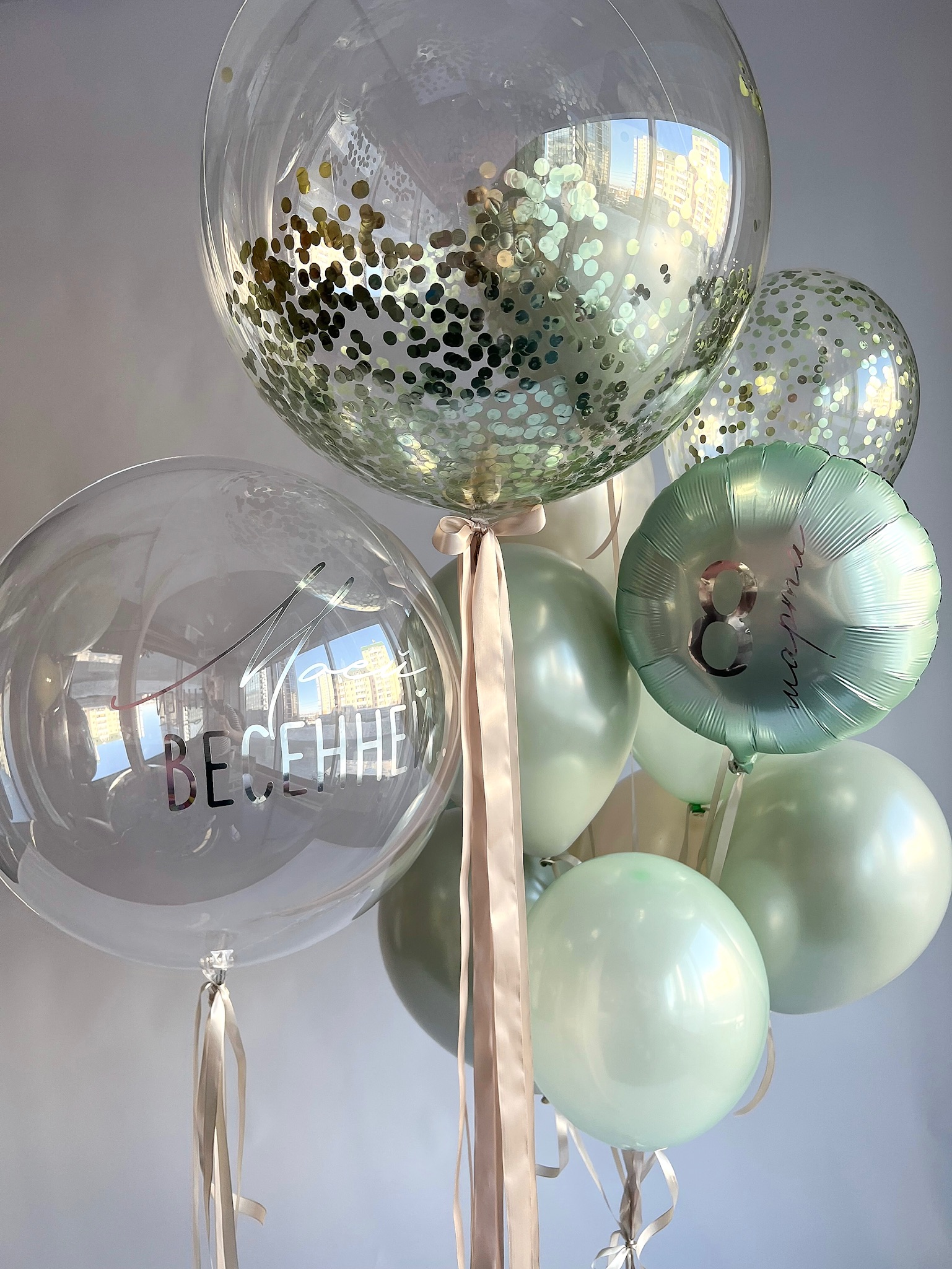 - кристалл белбал 14" + конфетти светл.зеленый-1шт