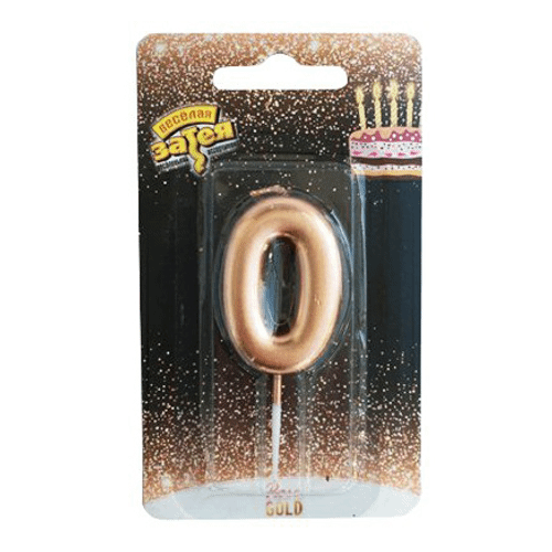 Свеча для торта цифра 0 Веселая Затея розовое золото 45 мм