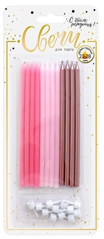 Свечи тортовые классические XL "Микс Металл" Розовый, нежно-розовый, роза голд металлизированные с держателями (набор Ассорти), 12 шт, 15 см