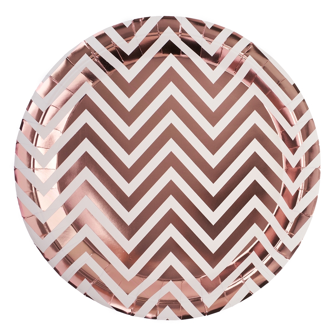 Тарелки (9''/23 см) Зигзаги, Розовое Золото, Металлик, 6 шт
