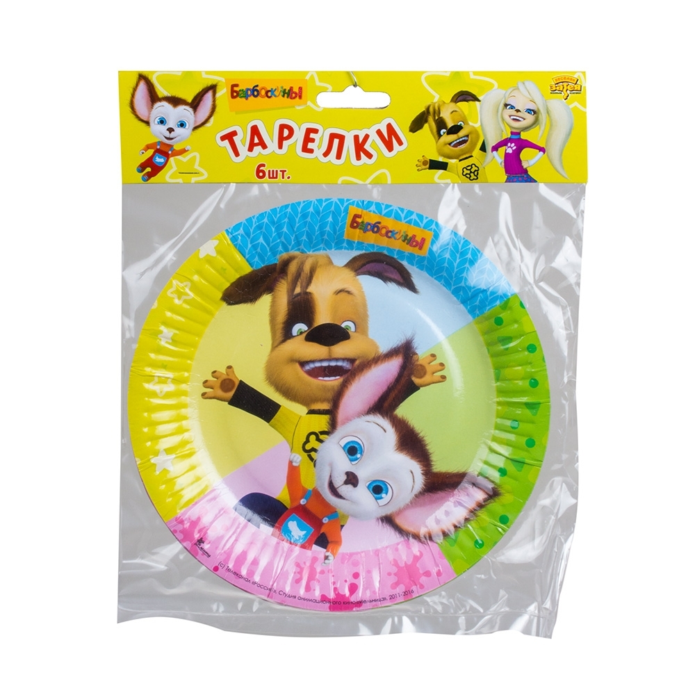 Тарелки бумажные одноразовые Riota Барбоскины, 17 см, 6 шт