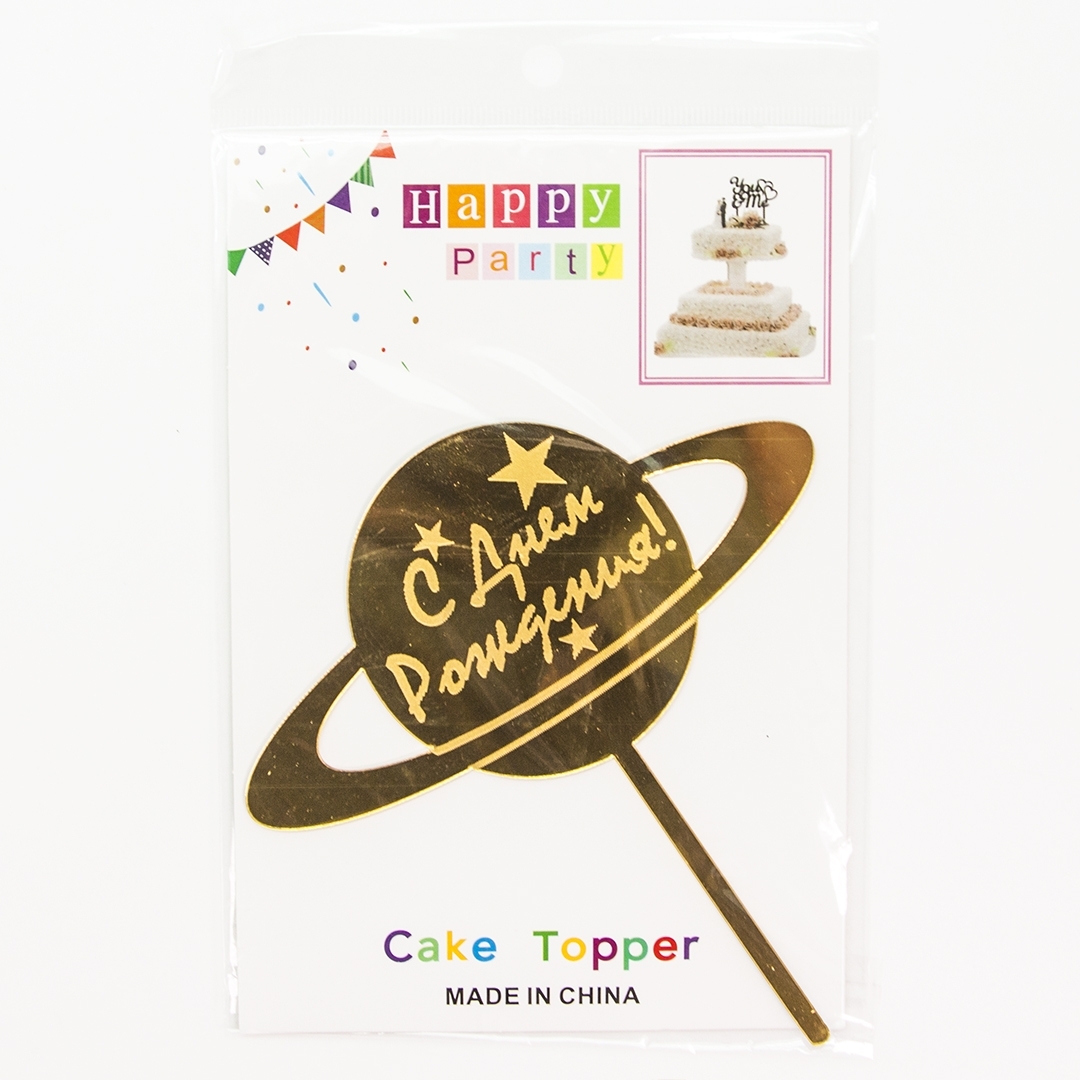 Топпер, С Днем Рождения! (Юпитер), Золото, Металлик, 13*14 см, 1 шт.