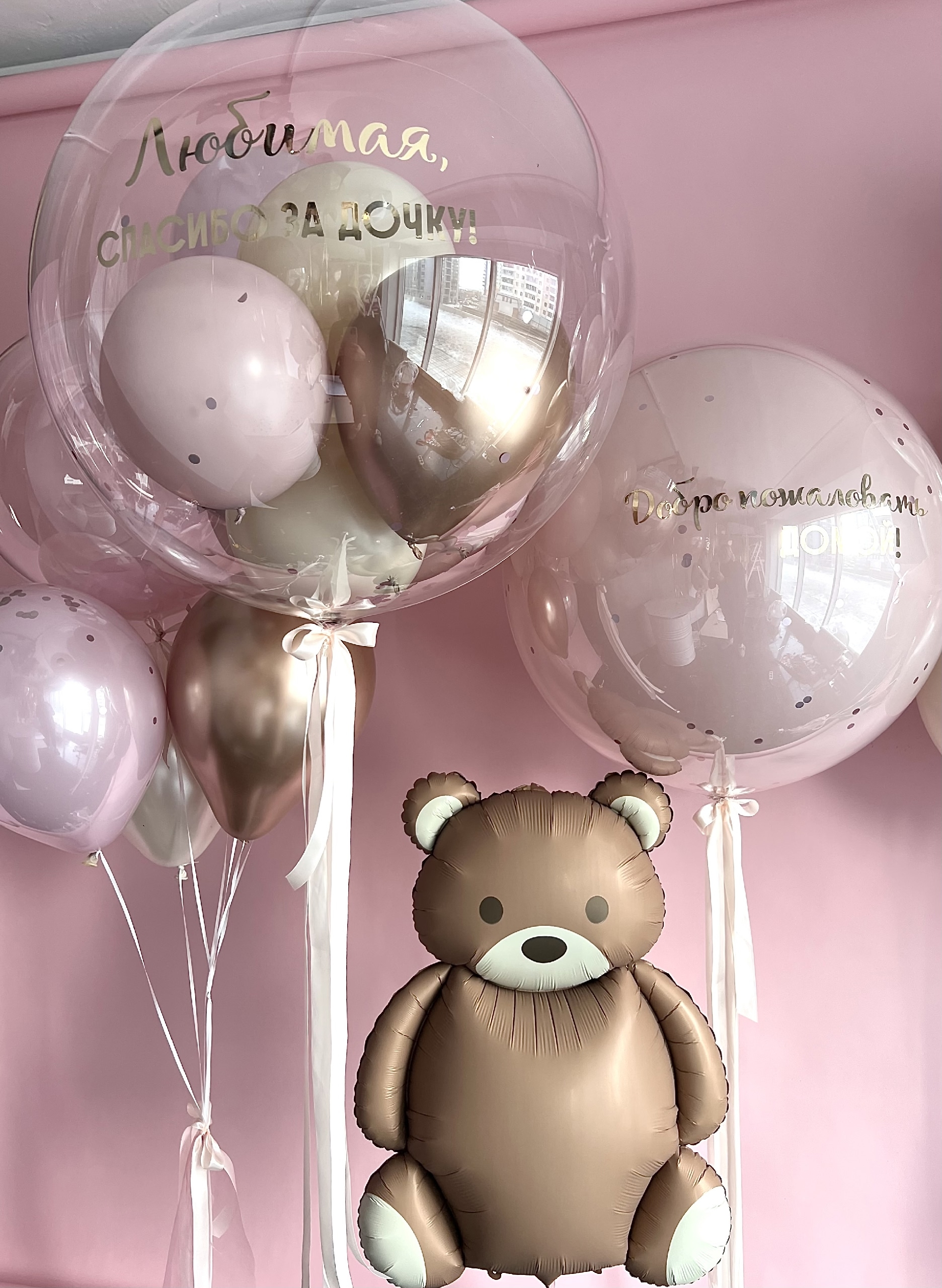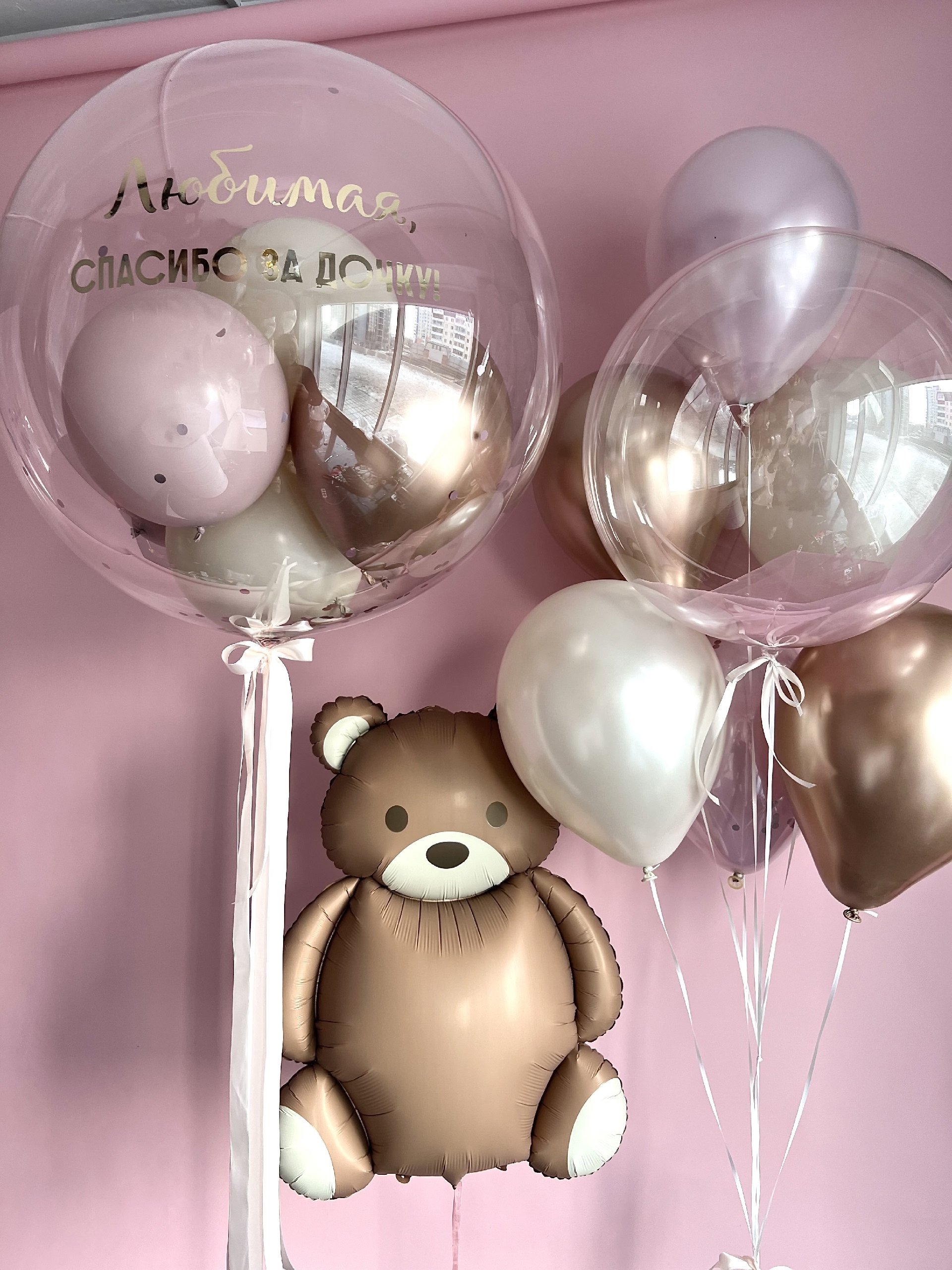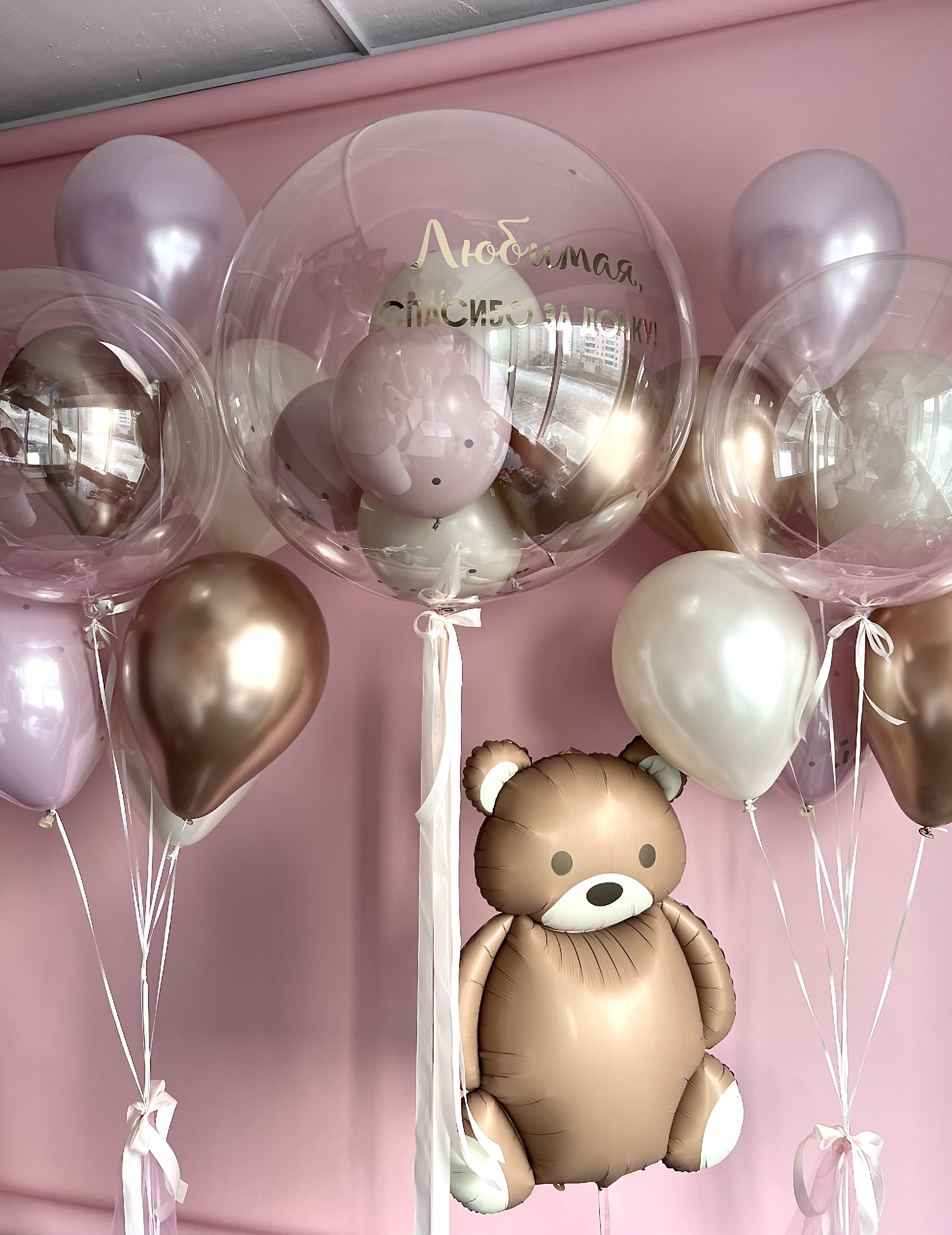 1 Шар Баблс 36" Китай, внутри латекс 12" 6 шт-пыльная роза, белый песок,